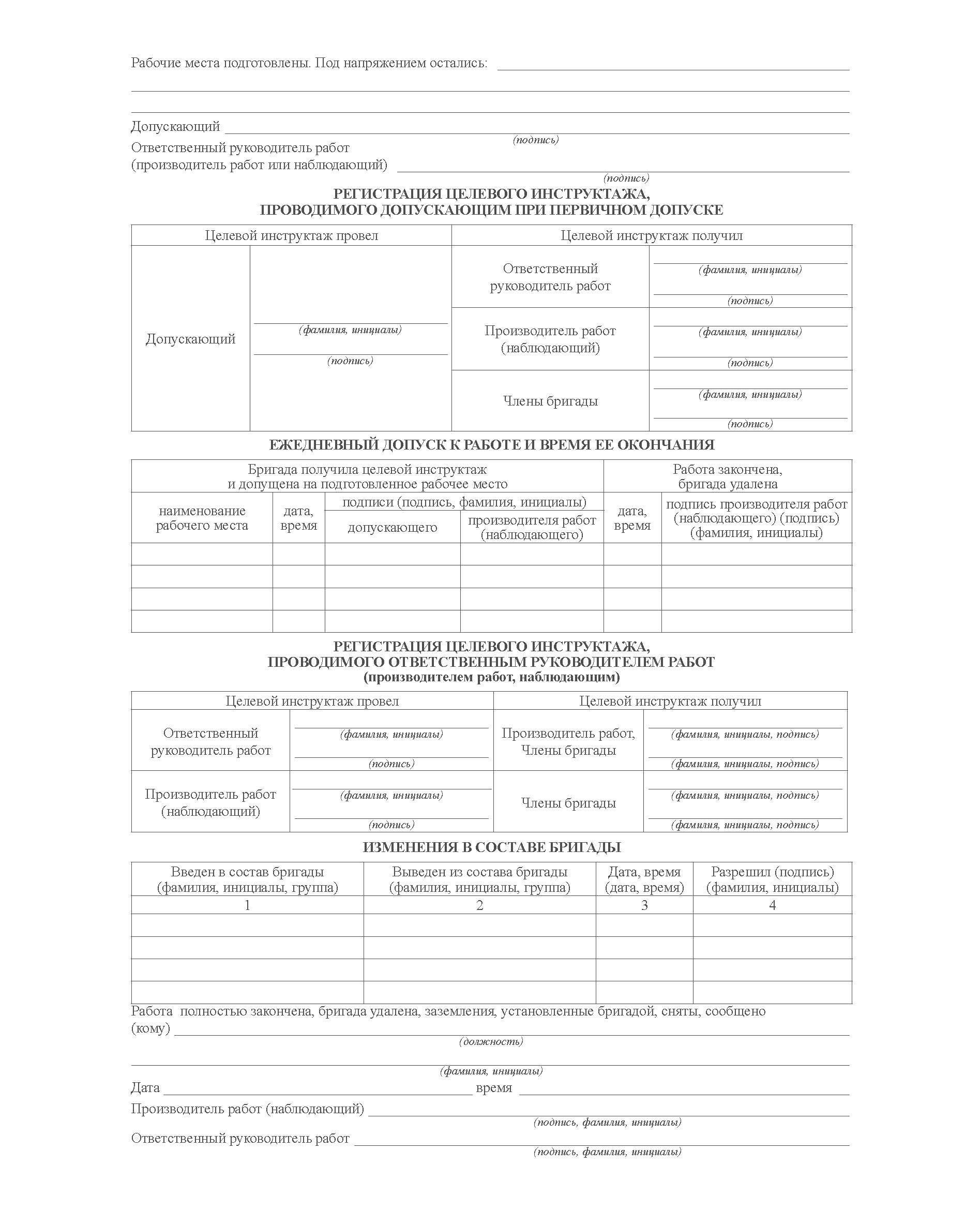 вместе с Указаниями по заполнению наряда-допуска для работы в электроустановках