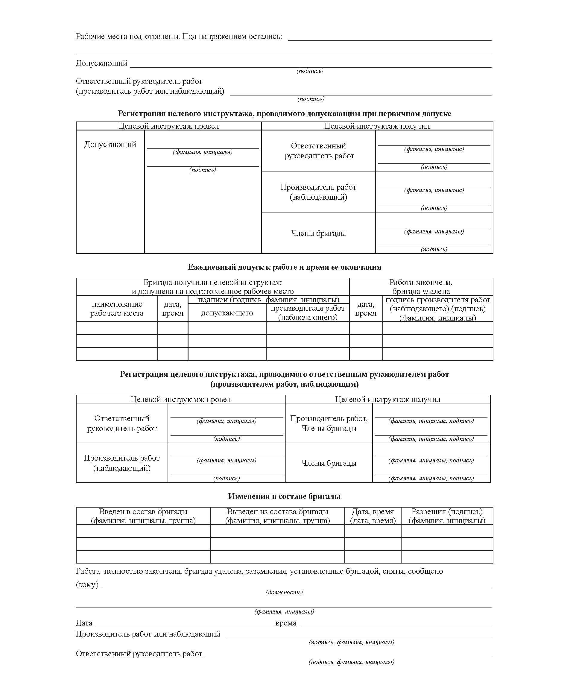 Наряд-допуск для работ в электроустановках (Приложение № 7 к Правилам по охране труда при эксплуатации электроустановок, утв. Приказом Минтруда РФ от 15.12.2020 № 903н)