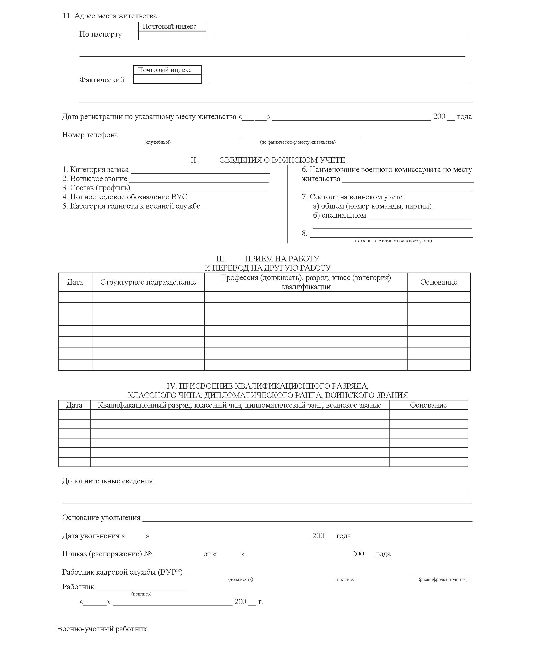 Личная карточка работника воинский учет форма № Т-2 ГС. Унифицированная форма № Т-2 ГС (ВУР*) (разработана на основании ф. № Т-2 ГС, утв. Пост. Госкомстата России от 29.12.2000 г. № 136)