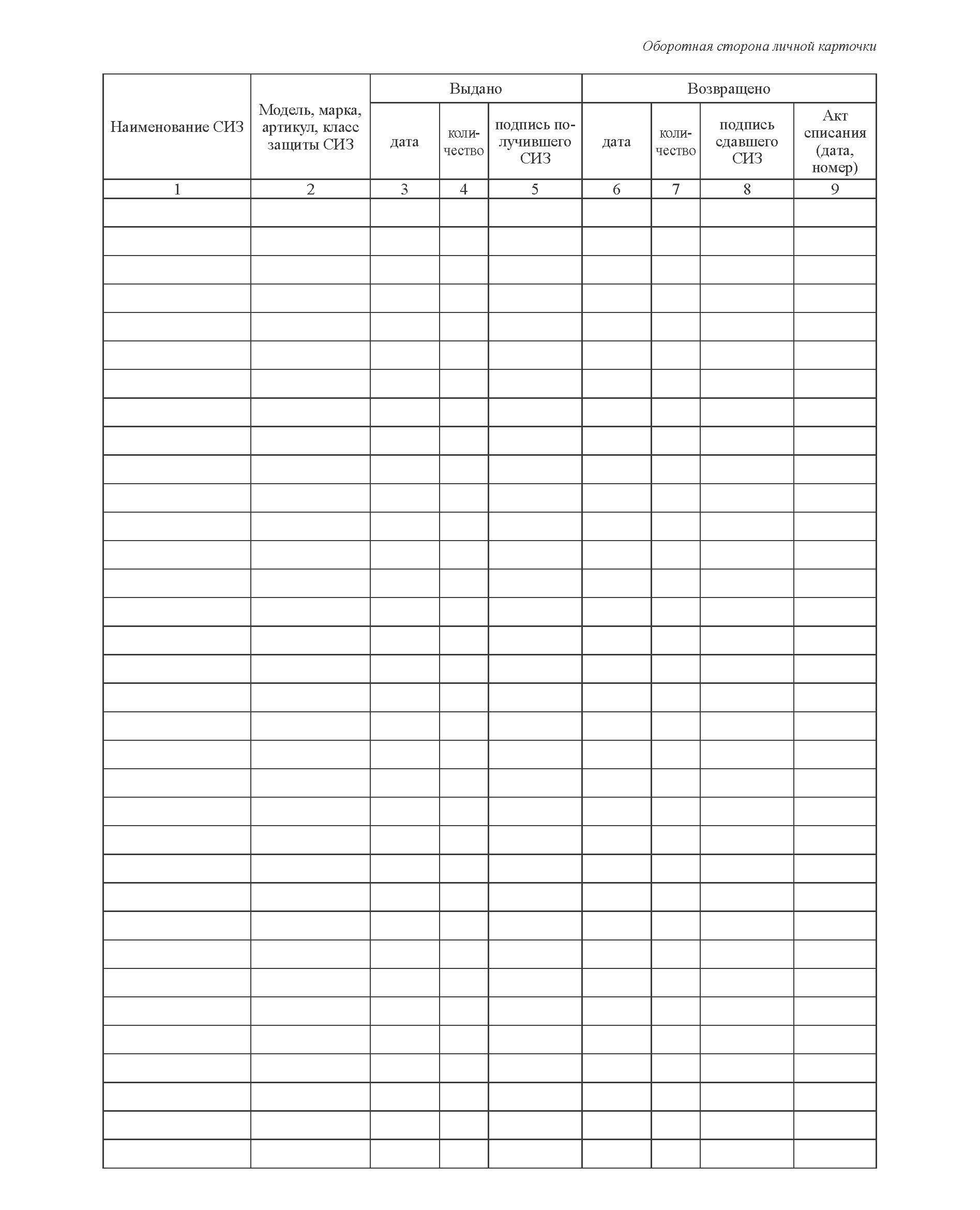 Выдача работникам и возврат ими СИЗ, выдача дерматологических СИЗ, смывающих средств фиксируются записью в личной карточке учета выдачи СИЗ, рекомендуемый образец которой предусмотрен приложением № 2 к Правилам.