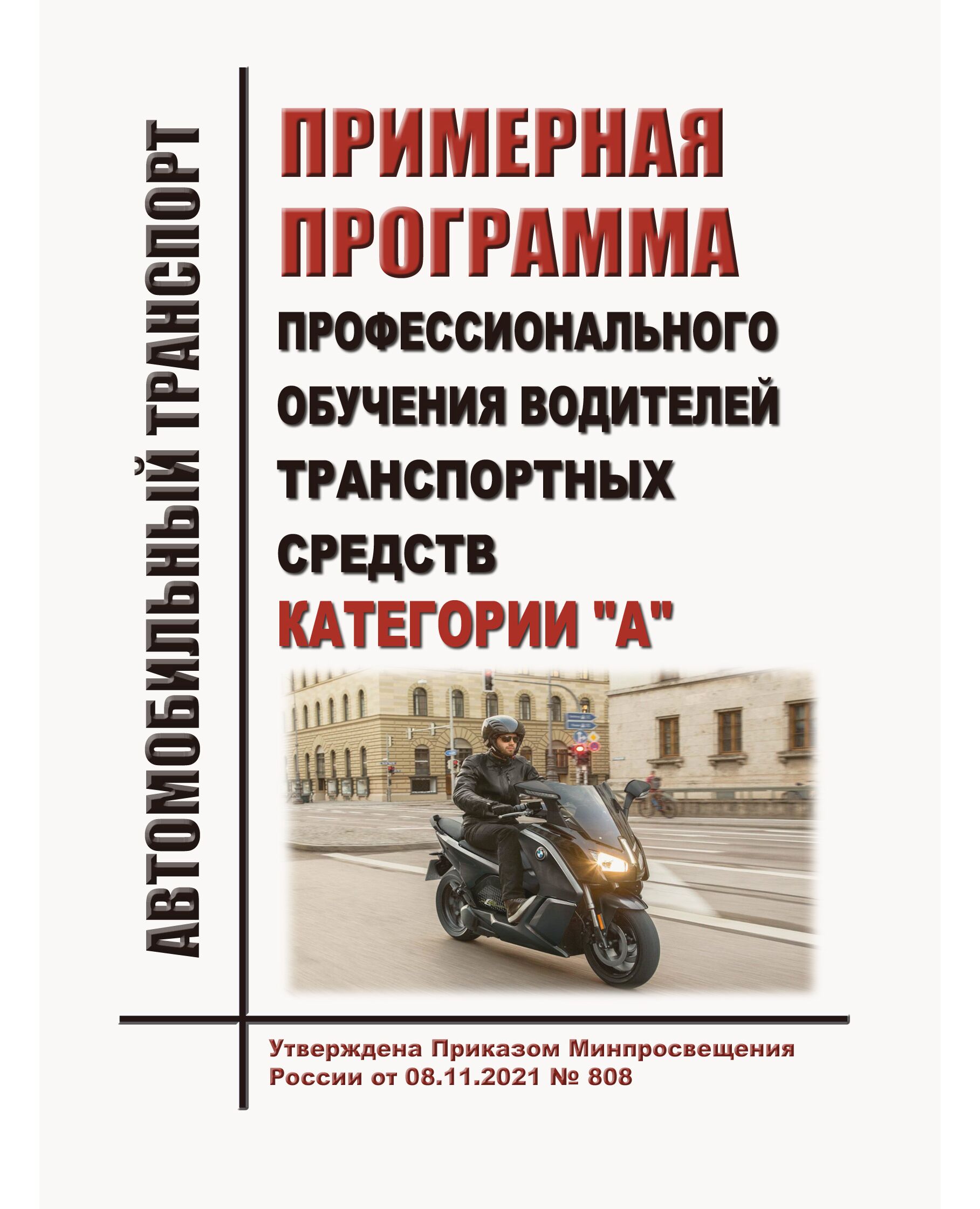 Примерная программа профессиональной подготовки водителей транспортных средств категории "A" Утверждены Приказом Минпросвещения России от 08.11.2021 № 808