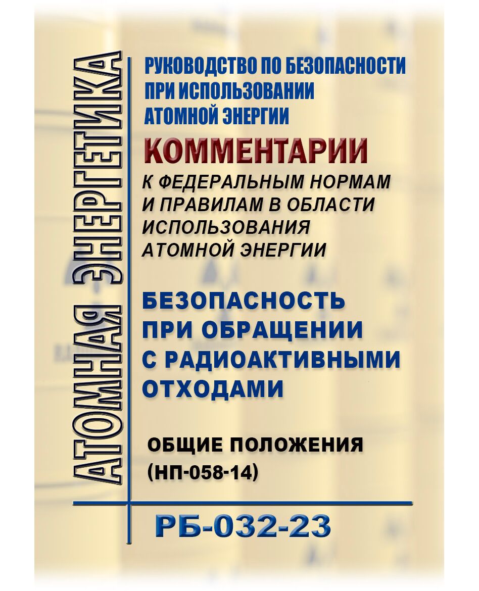 Руководство по безопасности при использовании атомной энергии "Комментарии к федеральным нормам и правилам в области использования атомной энергии "Безопасность при обращении с радиоактивными отходами. Общие положения" (НП-058-14)" (РБ-032-23) разработано в целях содействия соблюдению требований федеральных норм и правил в области использования атомной энергии "Безопасность при обращении с радиоактивными отходами. Общие положения" (НП-058-14)