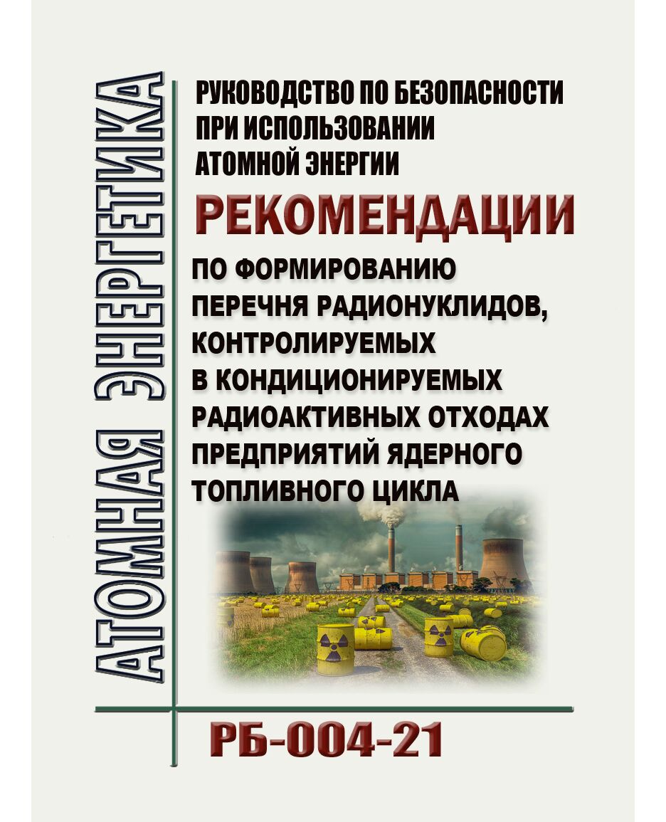 Руководство по безопасности при использовании атомной энергии "Рекомендации по формированию перечня радионуклидов, контролируемых в кондиционируемых радиоактивных отходах предприятий ядерного топливного цикла". РБ-004-21. Утверждено Приказом Ростехнадзора от 07.07.2021 № 251