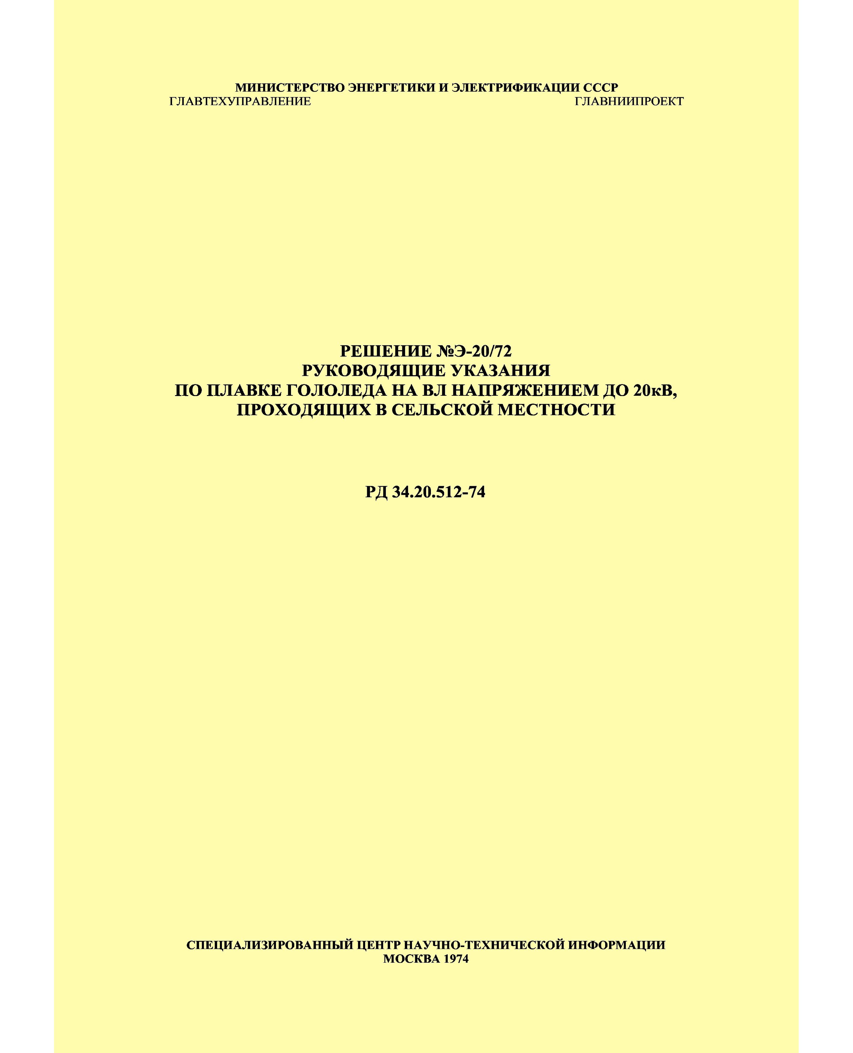 РД 34.20.512 (СО 153-34.20.512). Руководящие указания по плавке гололеда на ВЛ напряжением до 20 кВ, проходящих в сельской местности. Утверждены Минэнерго СССР 04.11.1972 года