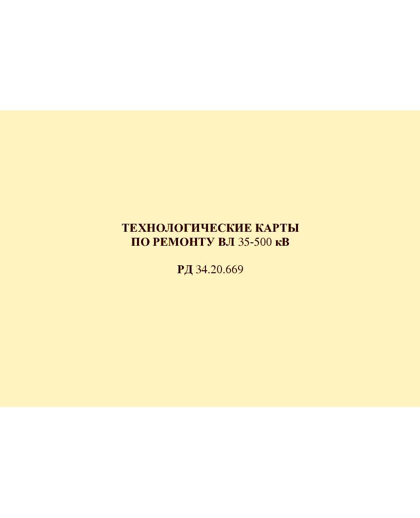 РД 34.20.669 (СО 153-34.20.669). Технологические карты по ремонту ВЛ 35-500 кВ. Утвержден и введен в действие Утвержден Минэнерго СССР 29.06.1992