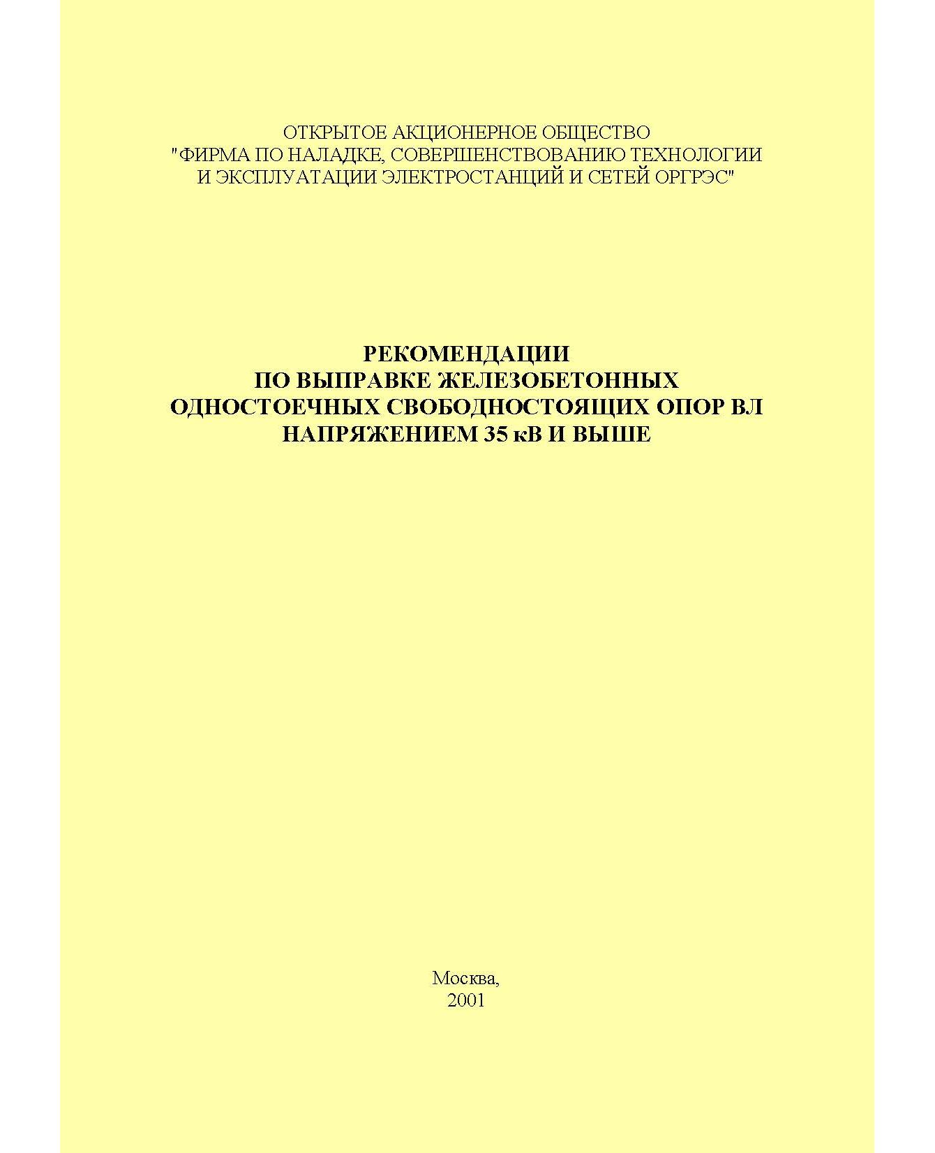 Настоящие Рекомендации предназначены для выполнения работ по устранению наклона (выправке) железобетонных одностоечных сво-бодностоящих одноцепных и двухцепных опор воздушных линий электропередачи (ВЛ) напряжением 35 кВ и выше, имеющих отклонение от вертикали в плоскости, перпендикулярной линии, образовавшееся вследствие смещения опоры в грунте.