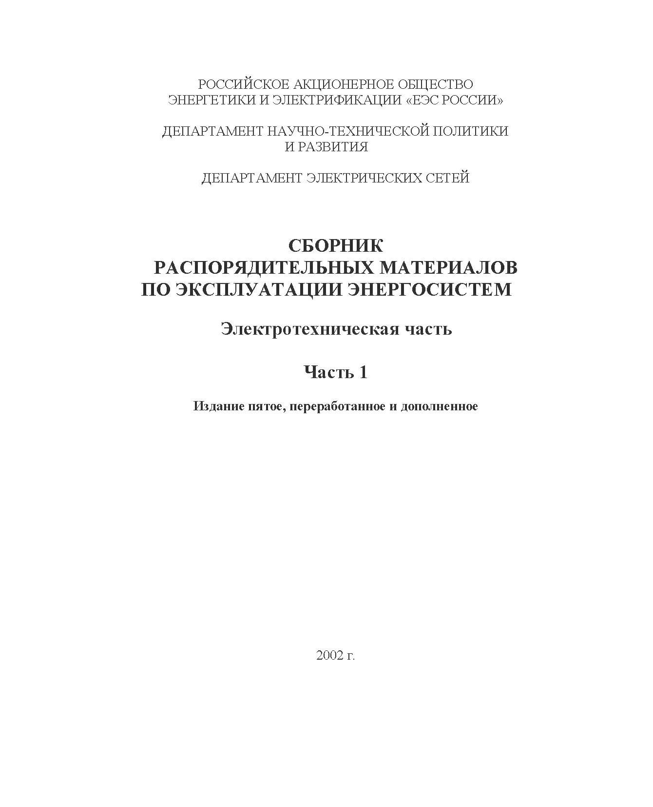Сборник дополнен циркулярами (Ц) и решениями (Р) департаментов РАО "ЕЭС России", изданными с 1 января 1990 г. по 31 декабря 2000 г. включительно с учетом их актуальности, опыта применения и использования в типовых инструкциях и других документах.