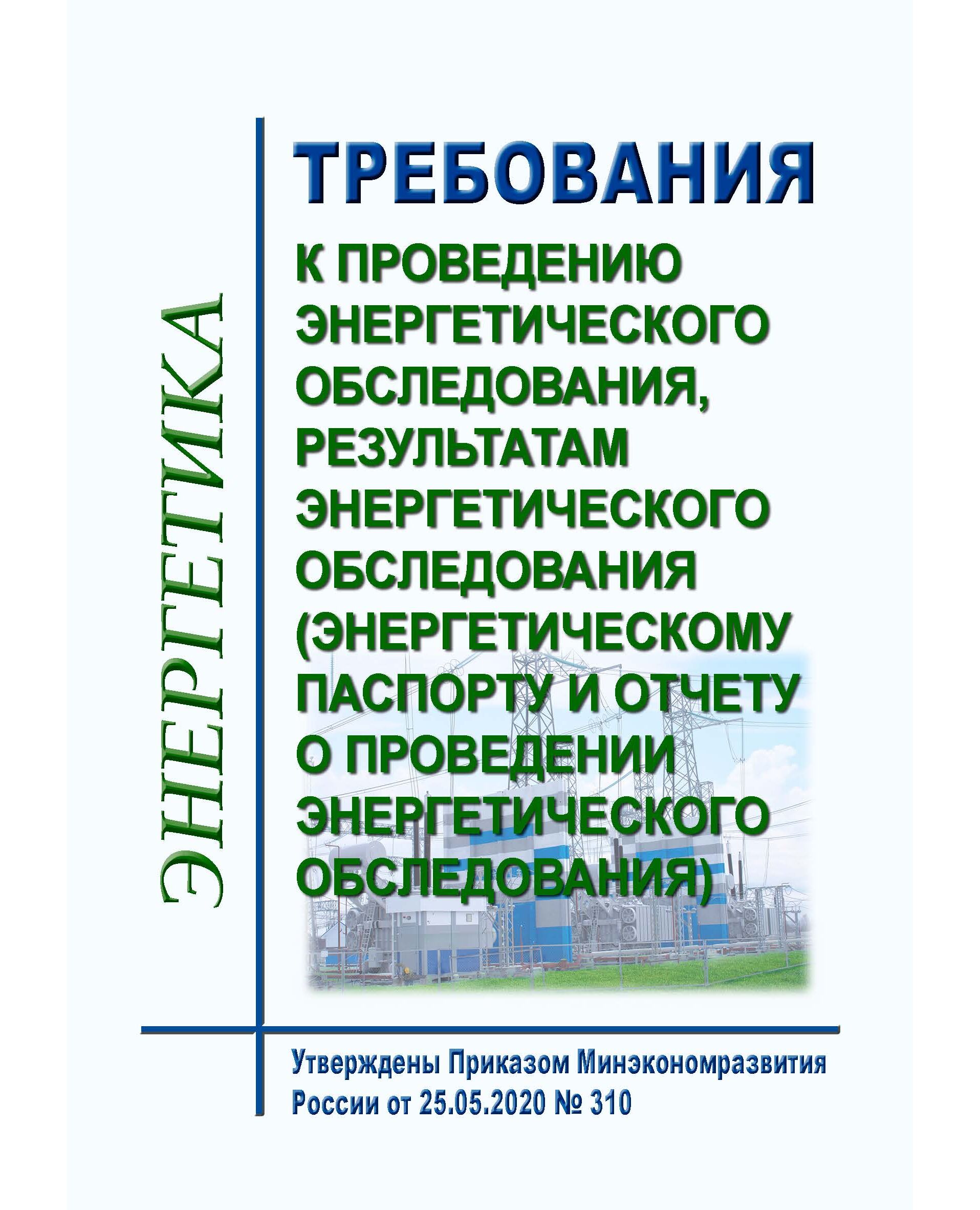 Требования к проведению энергетического обследования, результатам энергетического обследования (энергетическому паспорту и отчету о проведении энергетического обследования). Утверждены Приказом Минэкономразвития России от 25.05.2020 № 310