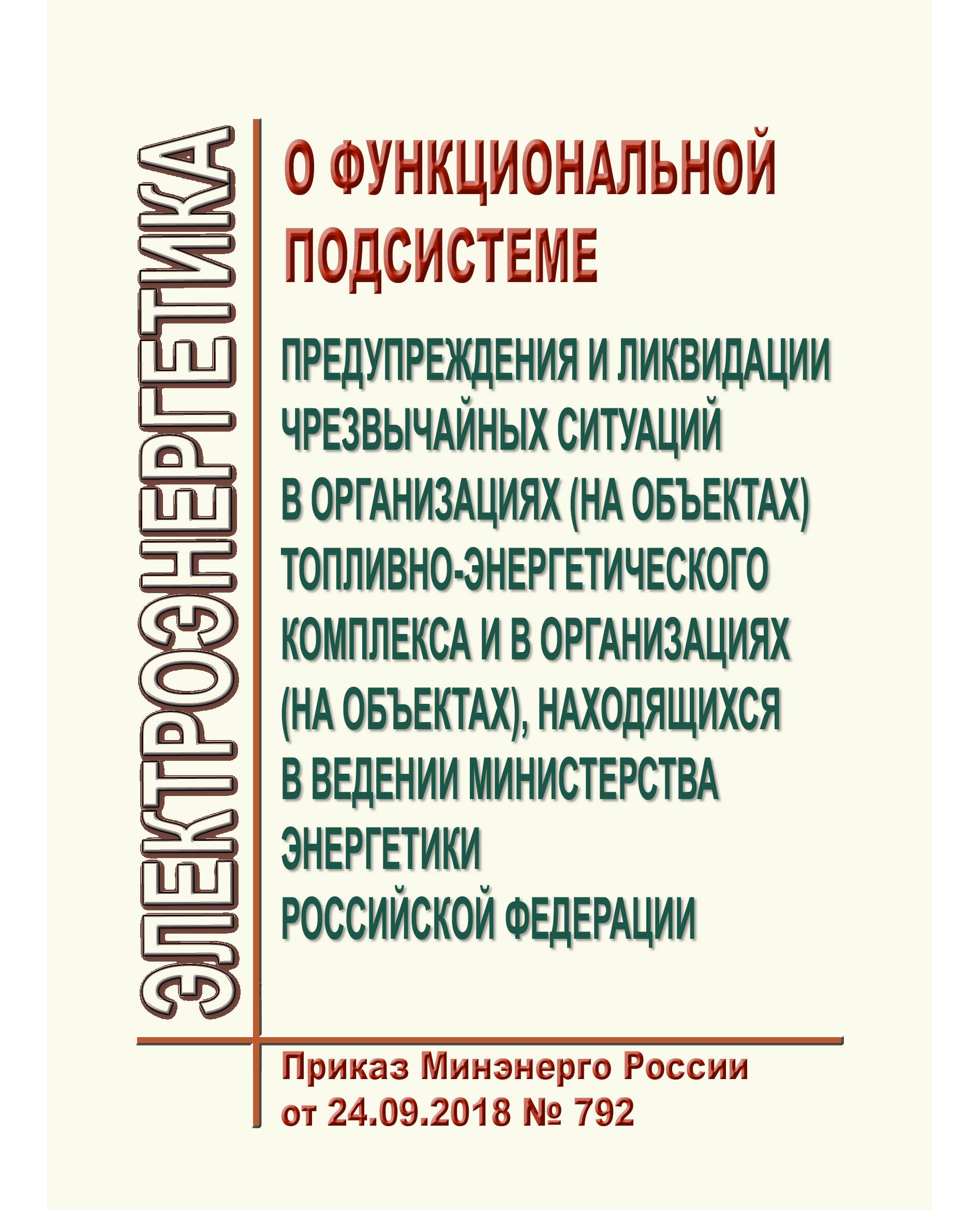 Положение о функциональной подсистеме предупреждения и ликвидации чрезвычайных ситуаций в организациях (на объектах) топливно-энергетического комплекса и в организациях (на объектах), находящихся в ведении Министерства энергетики России;