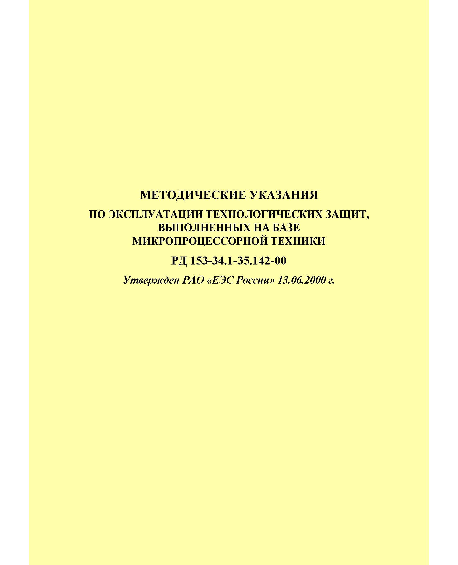 РД 153-34.1-35.142-00 (СО 34.35.142-00) Методические указания по эксплуатации технологических защит, выполненных на базе микропроцессорной техники. Утвержден и введен в действие РАО «ЕЭС России» 13.06.2000 г.