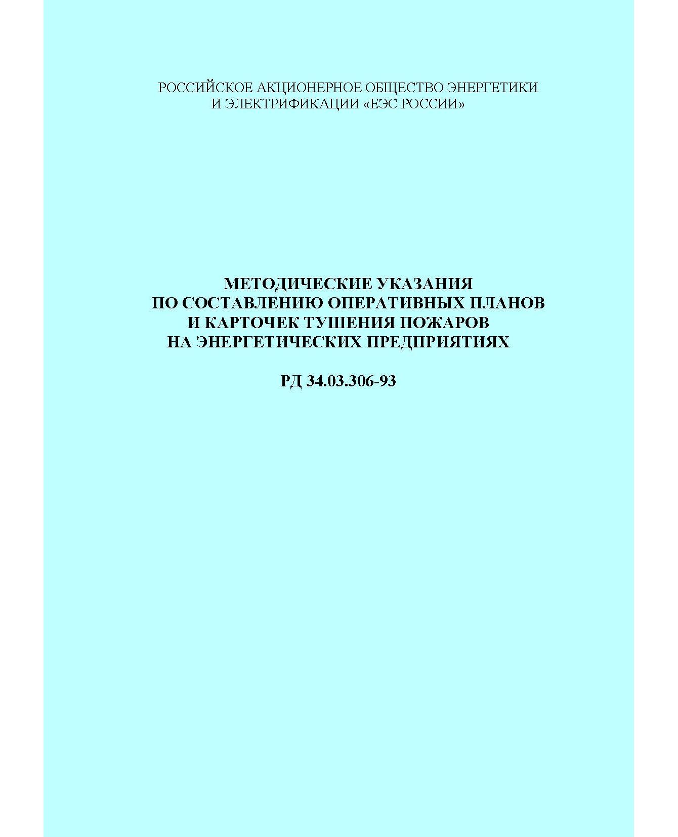 В Методических указаниях приведены основные требования по составлению оперативных планов и карточек тушения пожаров на энергетических предприятиях РАО «ЕЭС России».