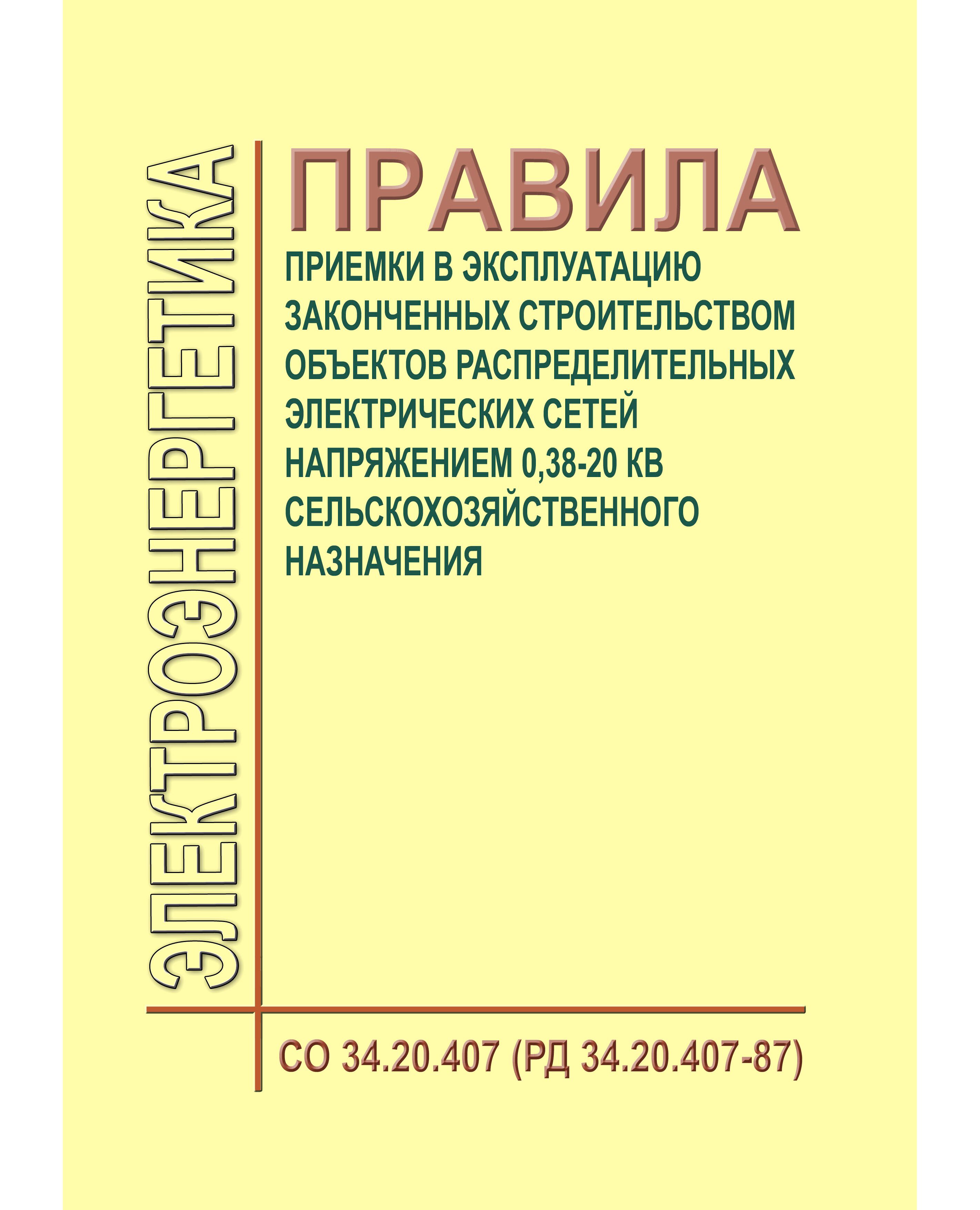 Настоящие Правила устанавливают порядок приемки в эксплуатацию законченных строительством (реконструкцией, расширением) объектов распределительных электрических сетей напряжением 0,38-20 кВ сельскохозяйственного назначения.