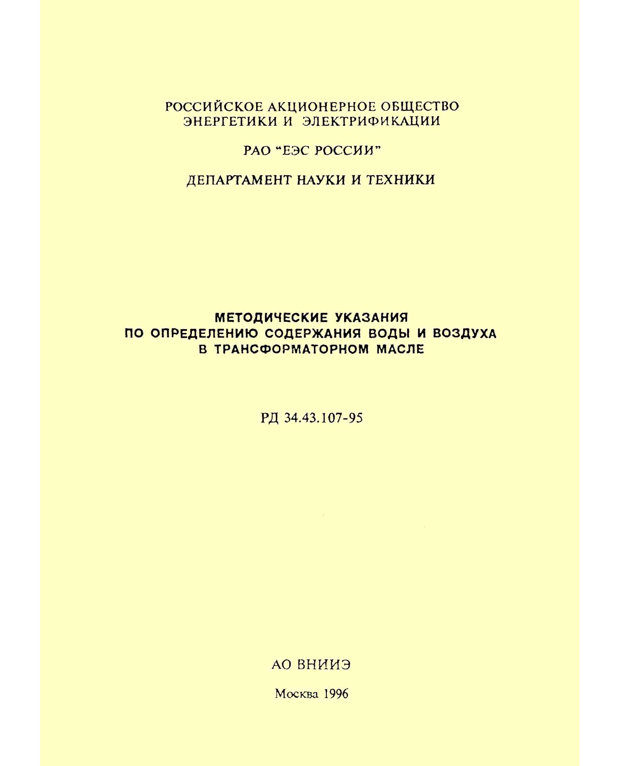 Настоящие Методические указания включают методики измерения общего газосодержания и влажности трансформаторных масел, которые рекомендуются для применения персоналом электрических станций, электрических сетей, подстанций, а также наладочных и ремонтных предприятий.