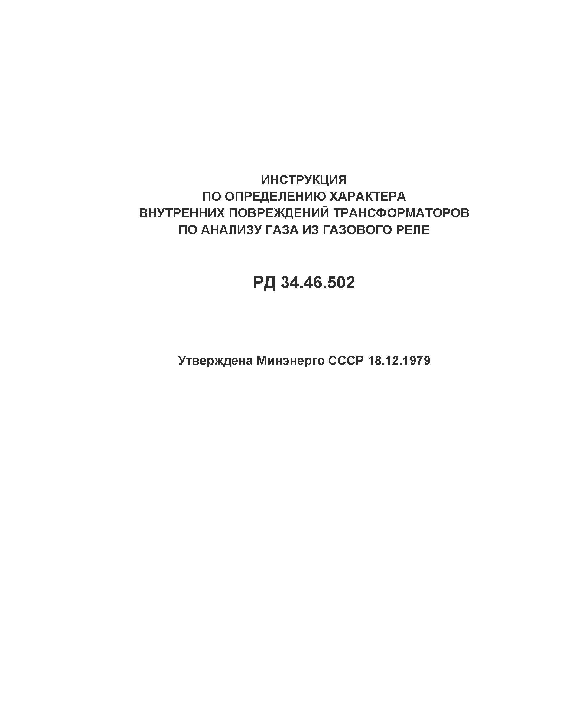 РД 34.46.502 (СО 153-34.46.502). Инструкция по определению характера внутренних повреждений трансформаторов по анализу газа из газового реле. Утвержден и введен в действие Минэнерго СССР 18.12.1979 г.
