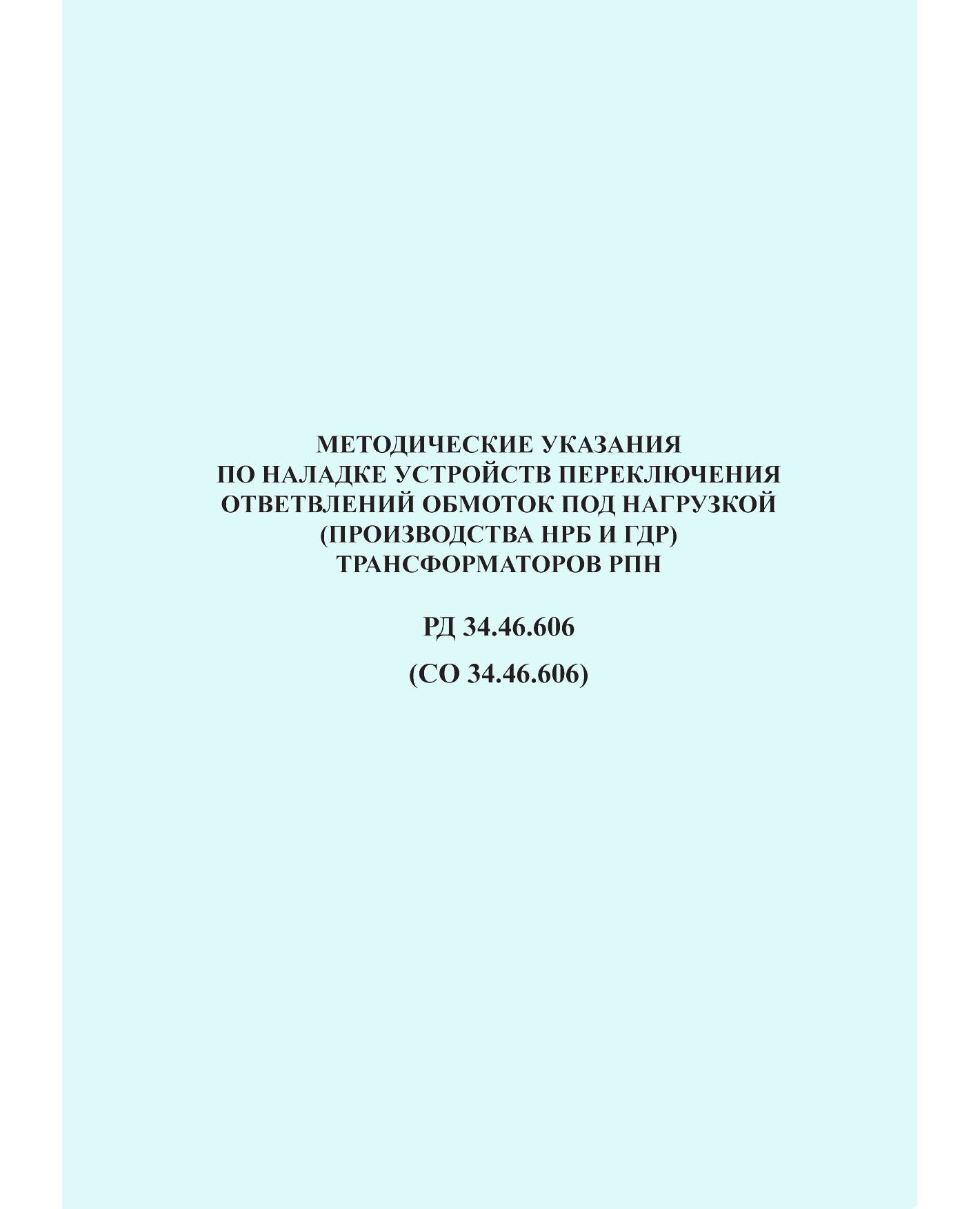 РД 34.46.606 (СО 34.46.606). Методические указания по наладке устройств переключения ответвлений обмоток под нагрузкой (производства НРБ и ГДР) трансформаторов РПН. Утвержден и введен в действие Минэнерго СССР 30.03.1981 года