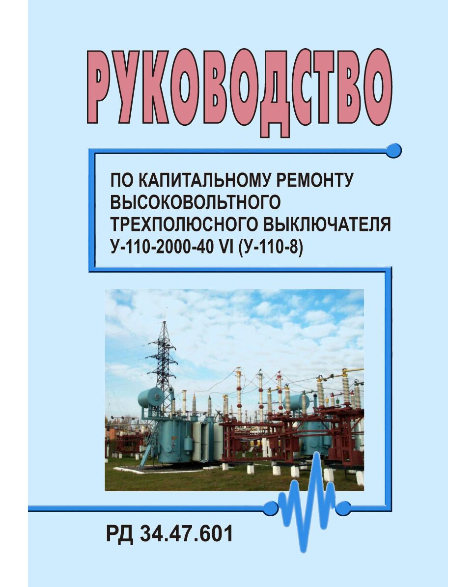 РД 34.47.601 (СО 153-34.47.601). Руководство по капитальному ремонту высоковольтного трехполюсного выключателя У-110-2000-40 УI (У-110-8). Утвержден и введен в действие Главэнергоремонтом 25.06.1979 г.