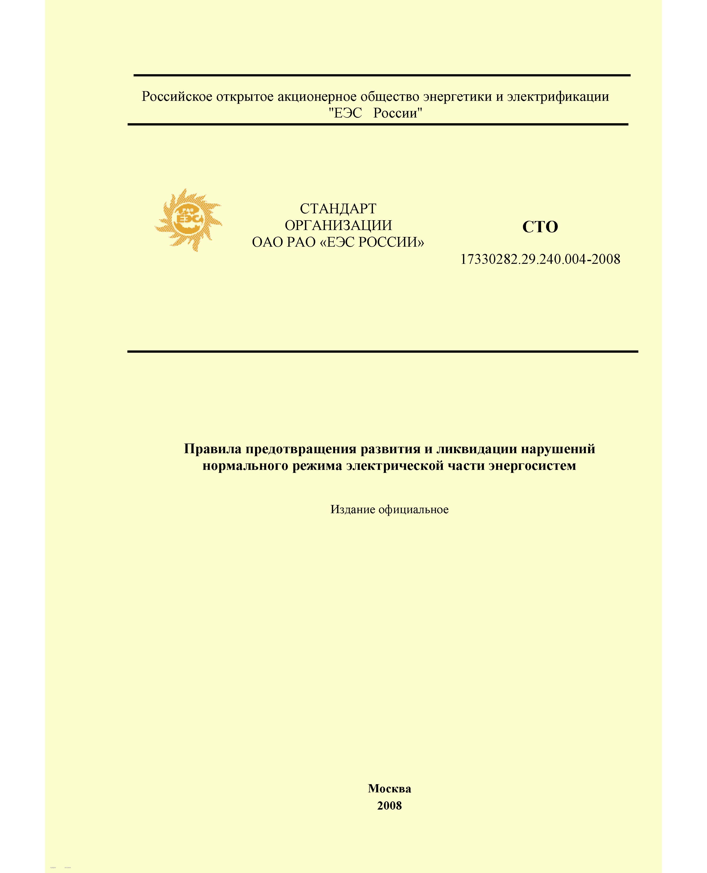 Стандарт определяет правила и порядок действий по предотвращению развития и ликвидациям нарушений нормального режима энергосистем в общем виде, не учитывая особенностей их выполнения на конкретном оборудовании, поэтому в развитие данного стандарта субъектами электроэнергетики могут быть разработаны собственные стандарты организаций, учитывающие эти особенности.