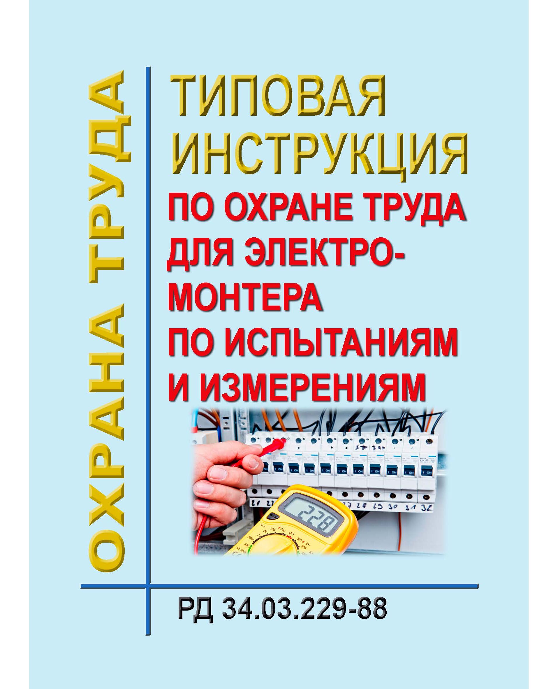 РД 34.03.229-88 (СО 153-34.03.229). Типовая инструкция по охране труда для электромонтера по испытаниям и измерениям. Утвержден и введен в действие Минэнерго СССР 28.07.88 г.