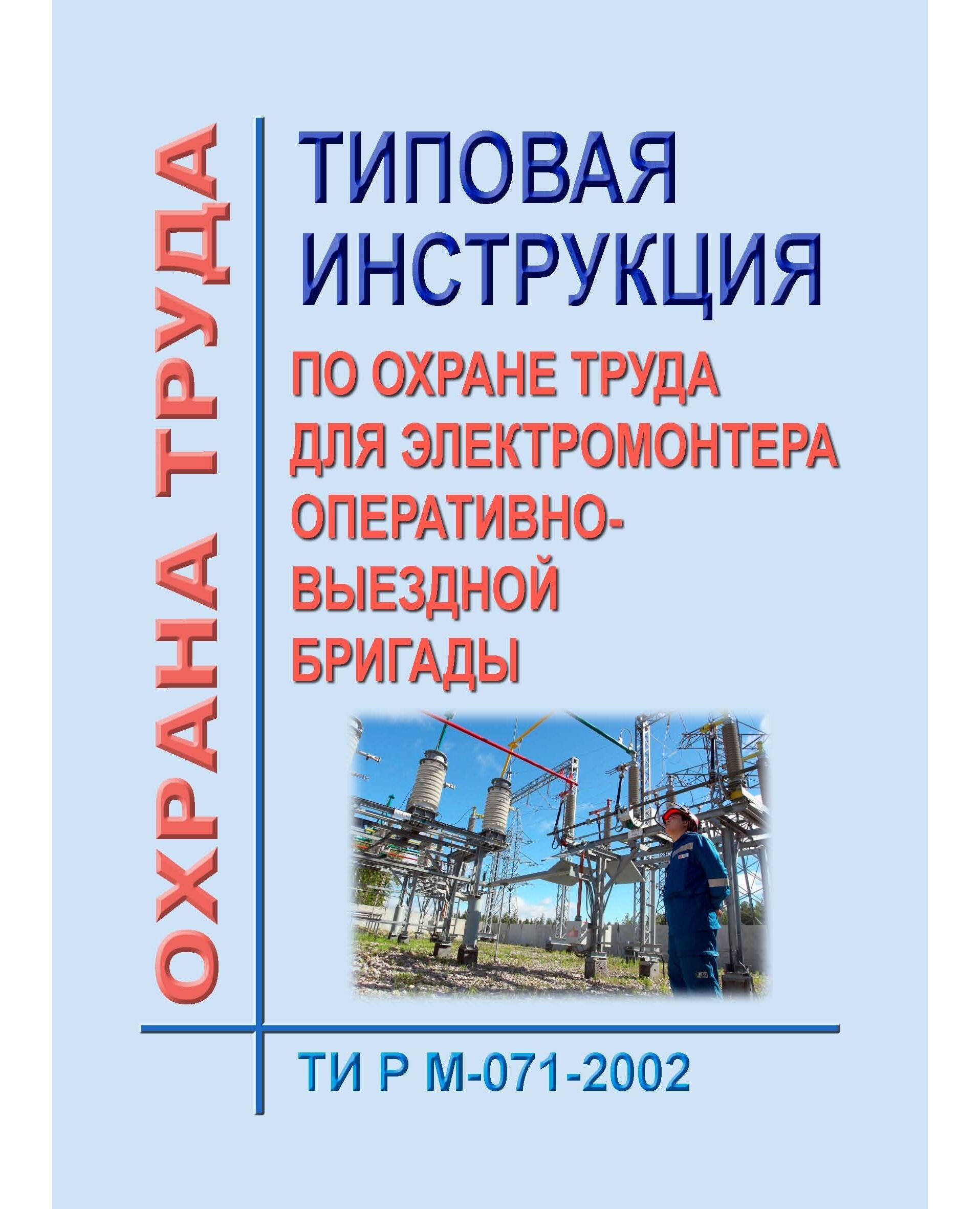 ТИ Р М-071-2002 (СО 153-34.03.257-2002). Типовая инструкция по охране труда для электромонтера оперативно-выездной бригады. Утверждена и введена в действие Минтрудом РФ 02.08.2002, Минэнерго РФ 25.07.2002
