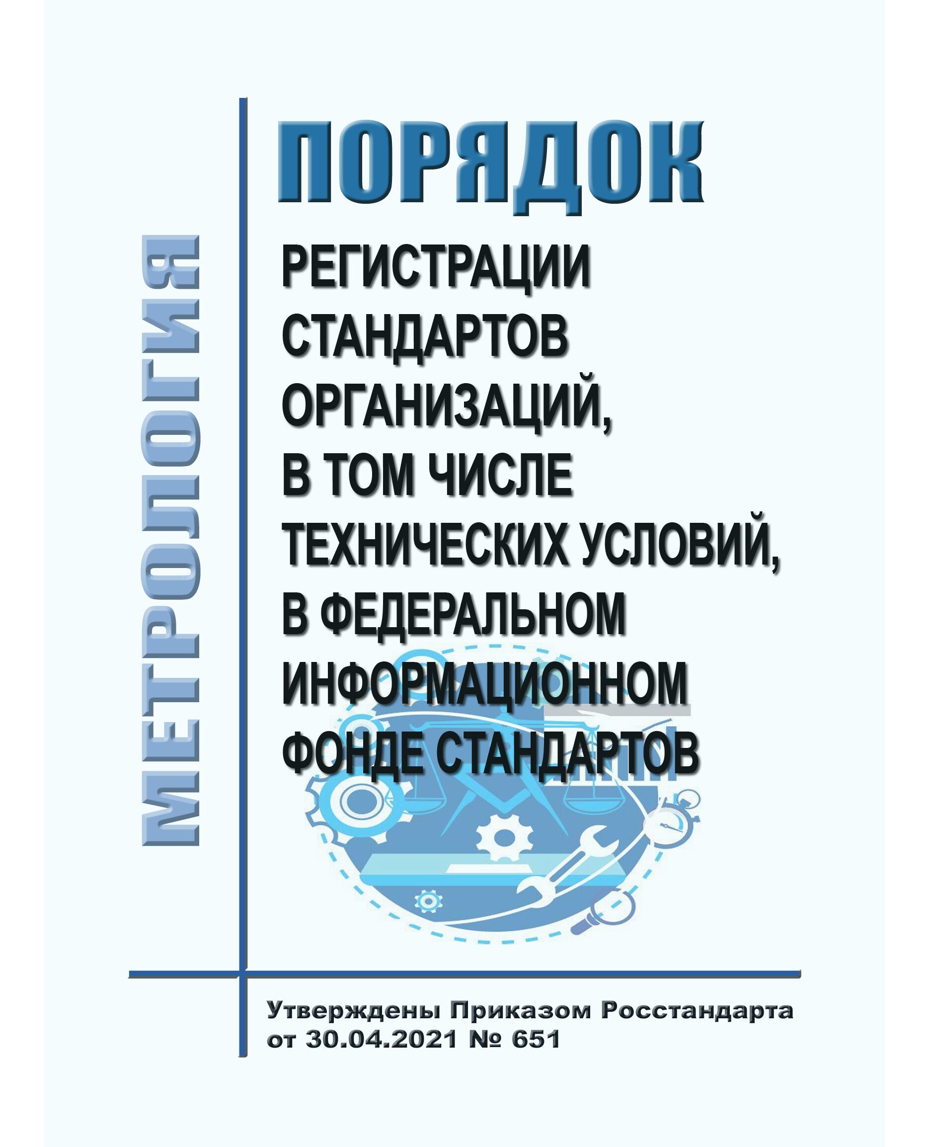 Порядок регистрации стандартов организаций, в том числе технических условий, в Федеральном информационном фонде стандартов. Утвержден Приказом Росстандарта от 30.04.2021 № 651