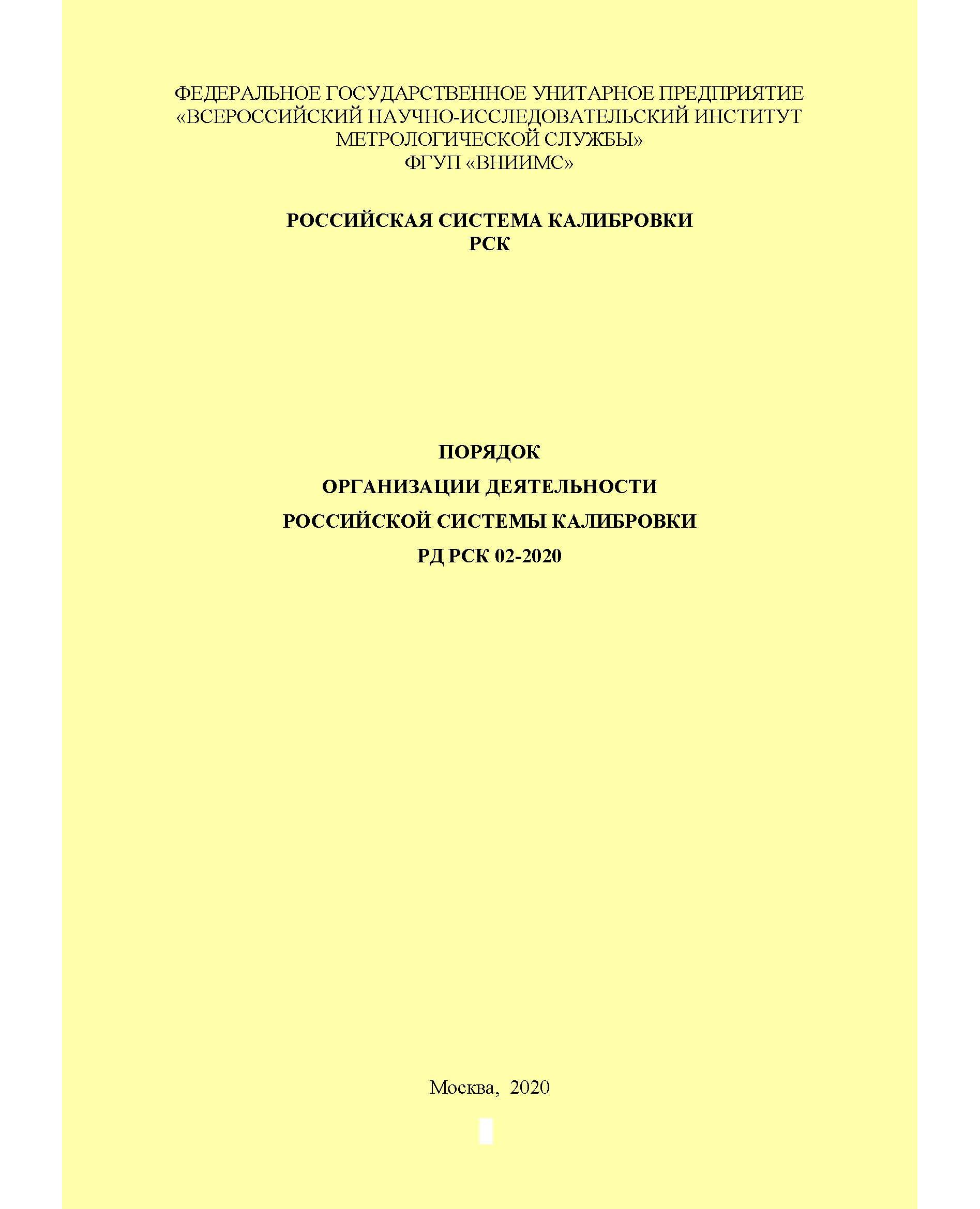 РД РСК 02-2020. Порядок организации деятельности Российской системы калибровки. Утвержден НМЦ РСК, ФГУП "ВНИИМС"