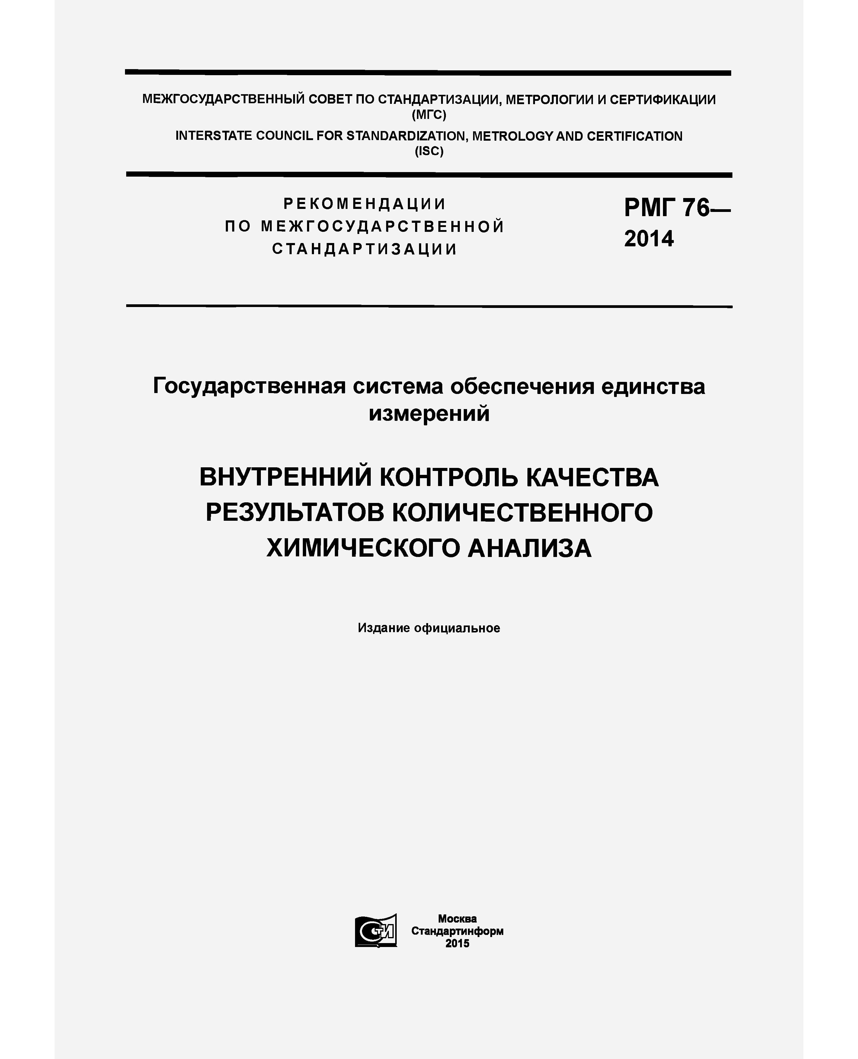 Рекомендации определяют порядок и содержание работ по внутрилабораторному (внутреннему) контролю качества результатов количественного химического анализа при реализации в отдельной лаборатории конкретной методики с установленными показателями качества.