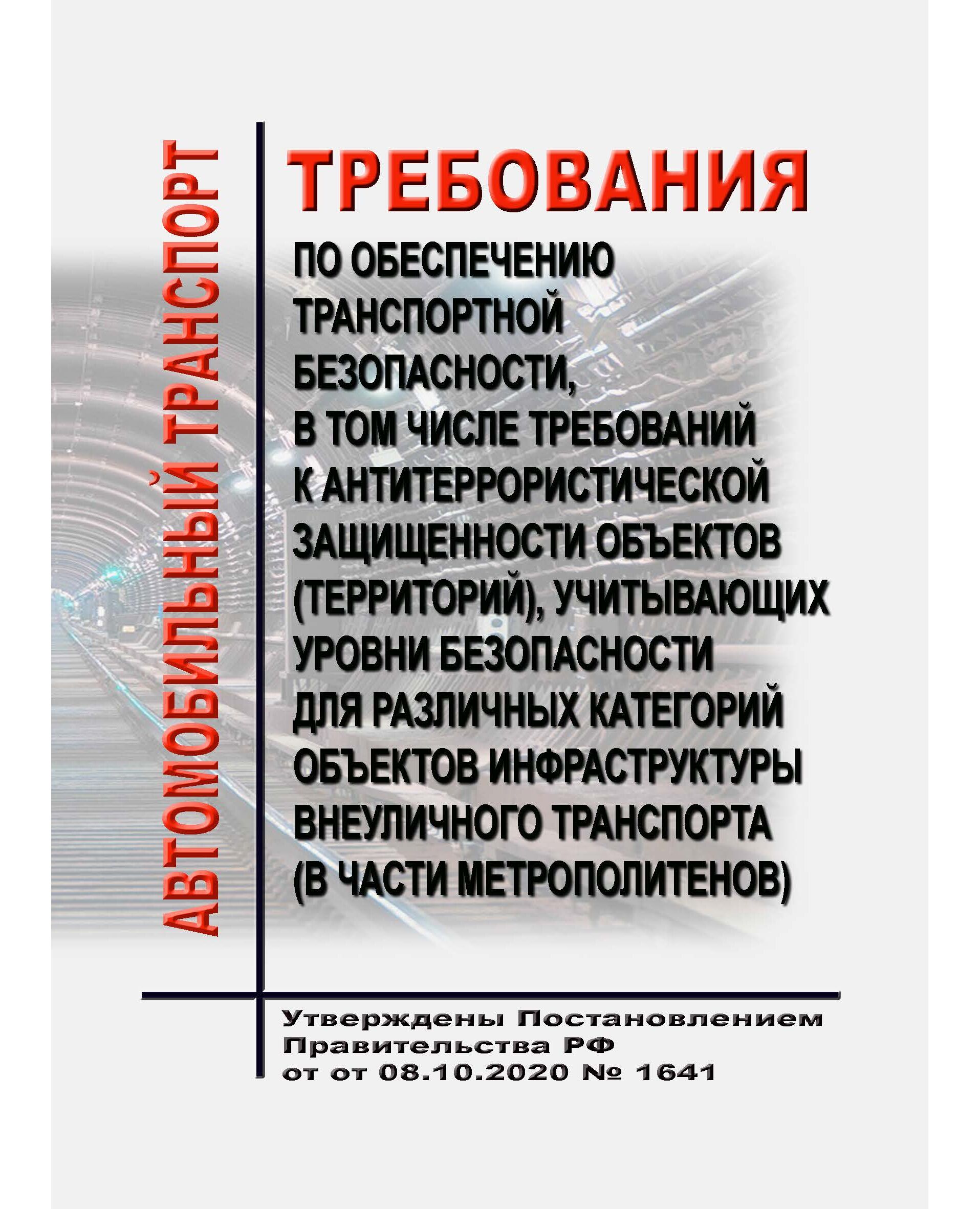 Настоящий документ устанавливает требования по обеспечению транспортной безопасности, в том числе требования к антитеррористической защищенности объектов (территорий), учитывающие уровни безопасности для различных категорий объектов инфраструктуры внеуличного транспорта (в части метрополитенов).