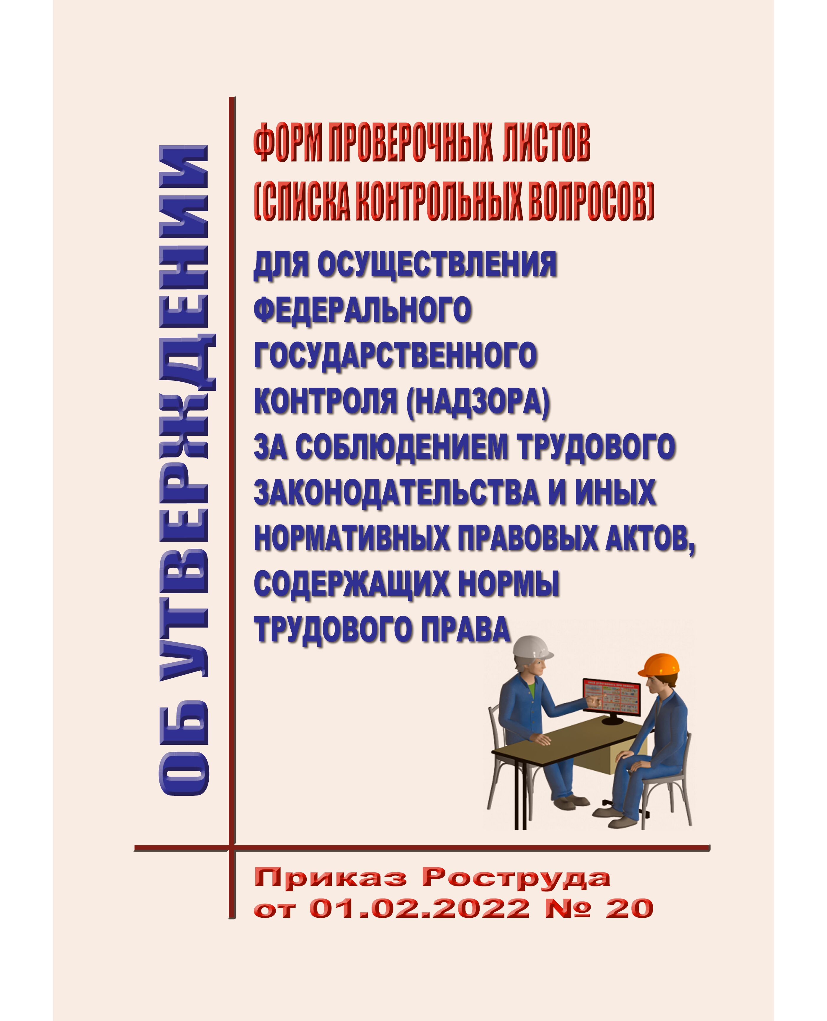 Приказом Роструда от 01.02.2022 № 20 утверждены 80 форм проверочных листов (списка контрольных вопросов) для осуществления федерального государственного контроля (надзора) за соблюдением трудового законодательства и иных нормативных правовых актов, содержащих нормы трудового права.