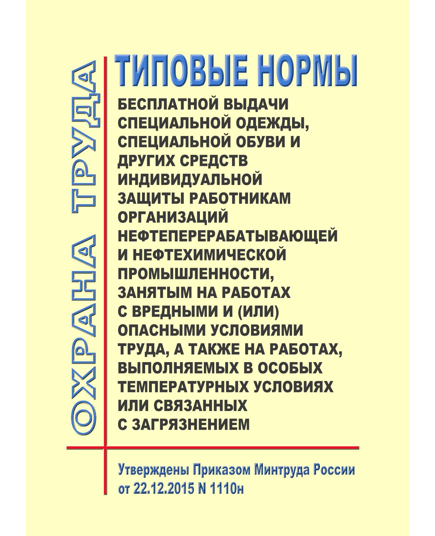 Главная/Книжные издания (Книги, брошюры)/Охрана труда и безопасность работ/Нормативные документы межотраслевого применения/Типовые нормы бесплатной выдачи специальной одежды, специальной обуви и других средств индивидуальной защиты работникам организаций нефтеперерабатывающей и нефтехимической промышленности, занятым на работах с вредными и (или) опасными условиями труда, а также на работах, выполняемых в особых температурных условиях или связанных с загрязнением. Утверждены Приказом Минтруда России от 22.12.2015 № 1110н