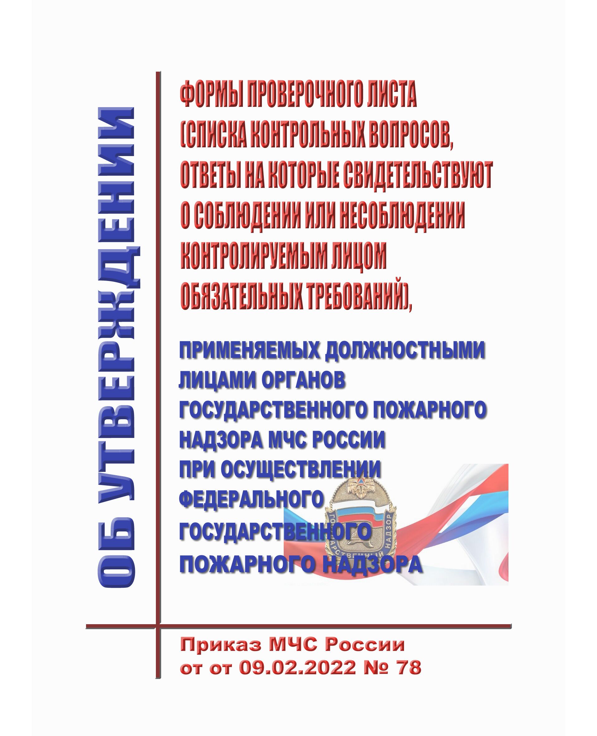 Приказом МЧС России от 09.02.2022 № 78 утверждены 28 форм проверочных листов (списка контрольных вопросов), применяемую в рамках федерального государственного пожарного надзора для различных объектов защиты.