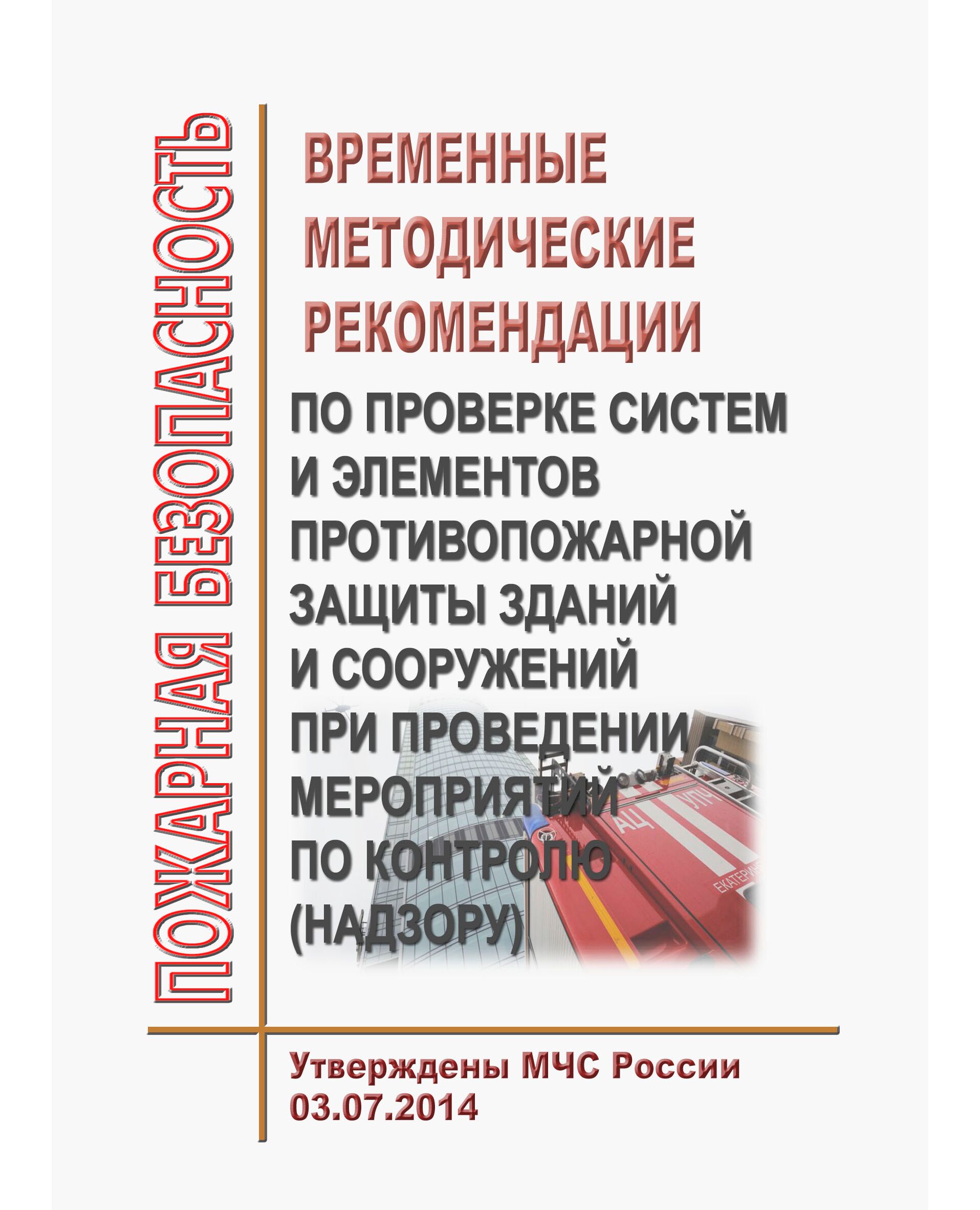 Методические рекомендации по проверке систем и элементов противопожарной защиты зданий и сооружений при проведении мероприятий по контролю (надзору) (далее - Методические рекомендации) разработаны для инспекторов федерального государственного пожарного надзора (ФГПН), экспертами судебно-экспертных учреждений (центров) федеральной противопожарной службы МЧС России, а также иными лицами и организациями, с целью повышения качества проведения мероприятий по контролю (надзору) на объектах защиты и повышения уровня обеспечения пожарной безопасности.