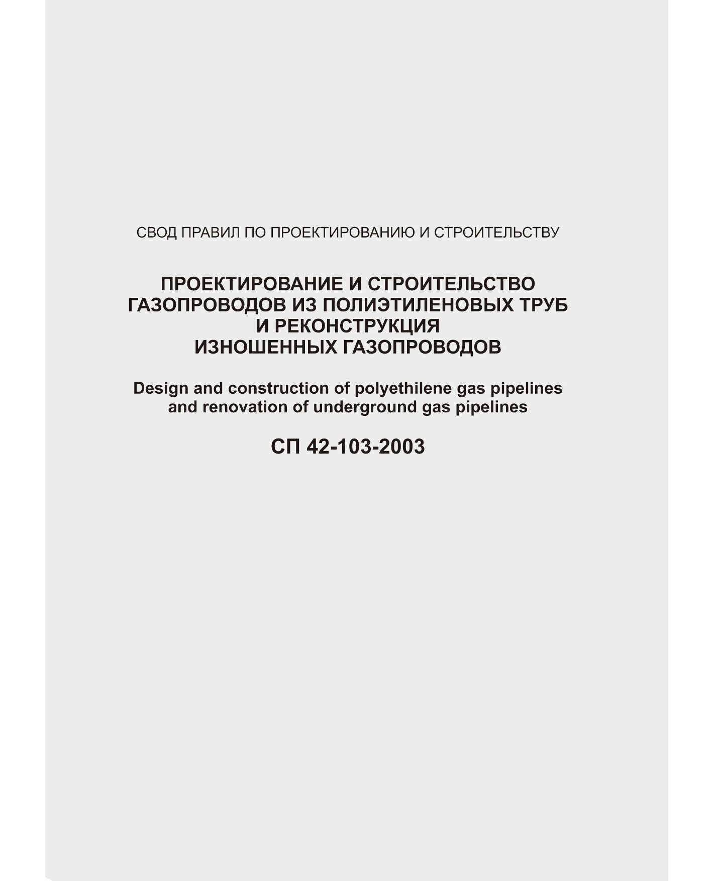 Главная/Книжные издания (Книги, брошюры)/Промышленная безопасность/Объекты газоснабжения/СП 42-103-2003 Проектирование и строительство газопроводов из полиэтиленовых труб и реконструкция изношенных газопроводов. Принят и введен в действие решением Межведомственного координационного совета по вопросам технического совершенствования газораспределительных систем и других инженерных коммуникаций, протокол от 27.11.2003 № 33