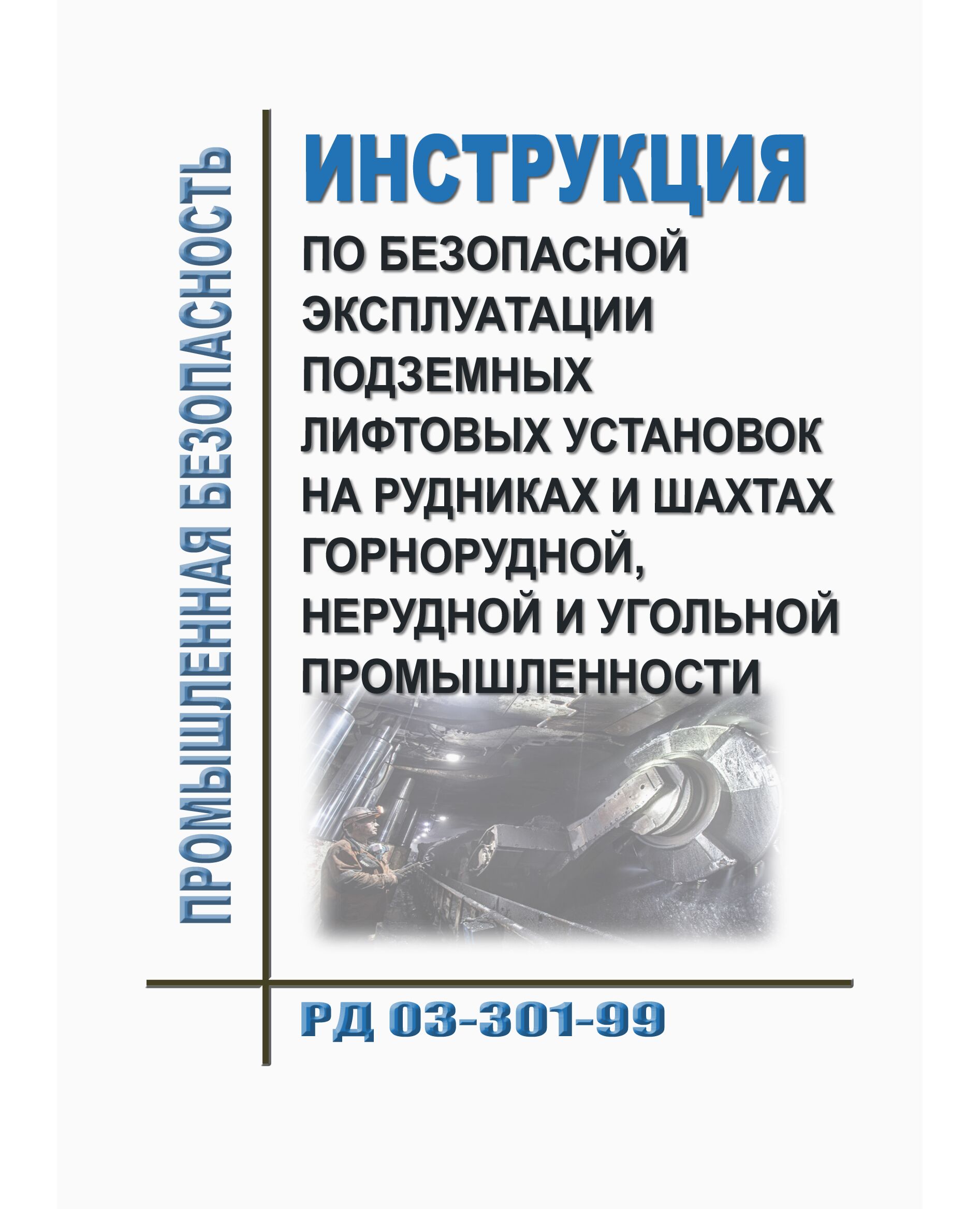 РД 03-301-99. Инструкция по безопасной эксплуатации подземных лифтовых установок на рудниках и шахтах горнорудной, нерудной и угольной промышленности. Утверждена. Постановлением Госгортехнадзора РФ от 29.07.1999 № 59