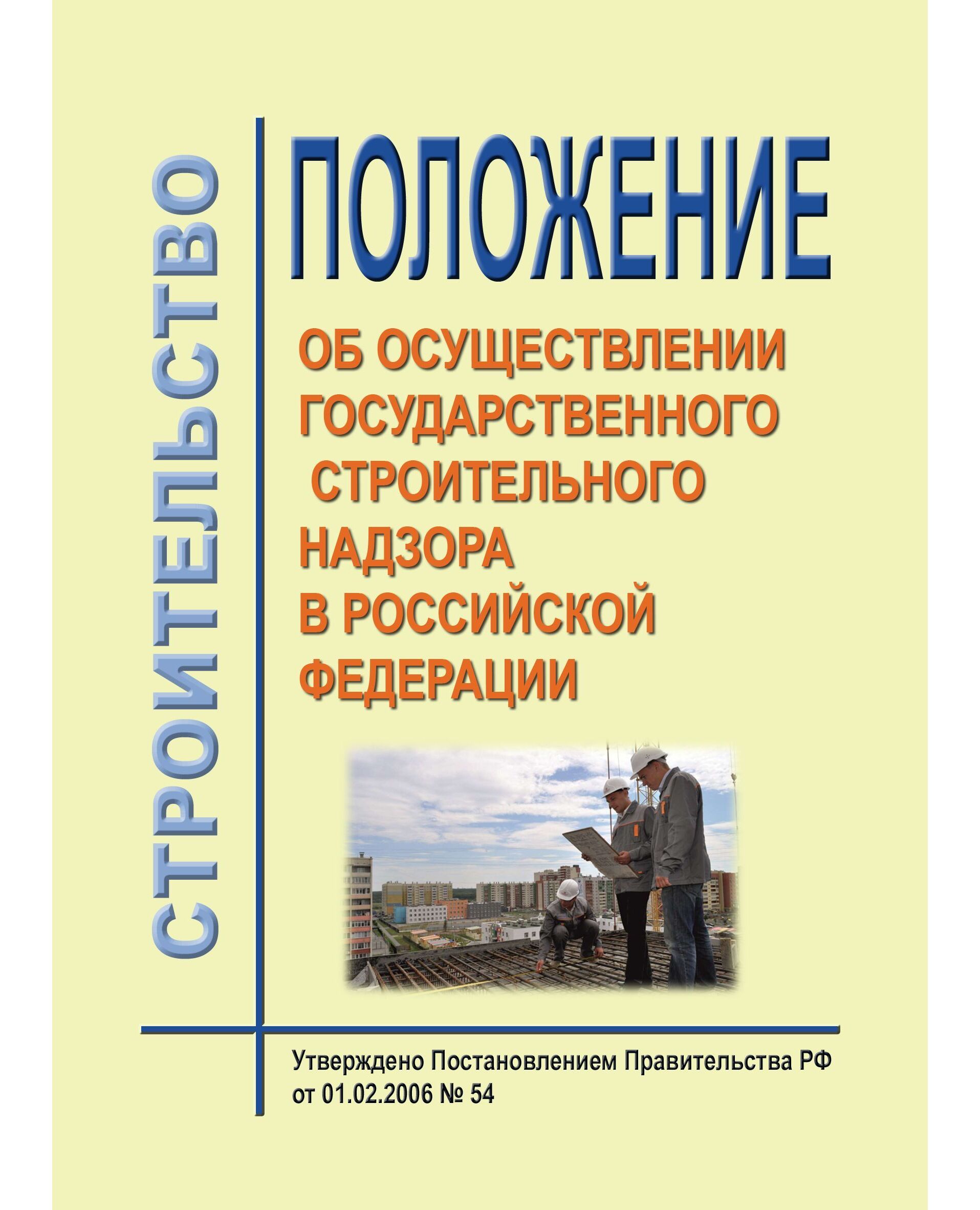 Положение об осуществлении государственного строительного надзора. Утверждено Постановлением Правительства РФ от 01.02.2006 № 54 в редакции Постановления Правительства РФ от 18.07.2019 № 926