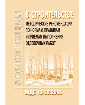Строительные нормы, правила и приемы работ, содержащиеся в настоящем документе, распространяются на производство отделочных работ (штукатурных, малярных, отделочных с применением листов и панелей, облицовочных, по устройству подвесных потолков, обойных и стекольных) в новом строительстве, при реконструкции и ремонте жилых, общественных и производственных зданий. Строительные нормы, правила и приемы работ, содержащиеся в настоящих Рекомендациях, могут быть утверждены организацией в качестве стандарта предприятия и использоваться при производстве работ, а также при сертификации и лицензировании организаций, выполняющих отделочные работы.