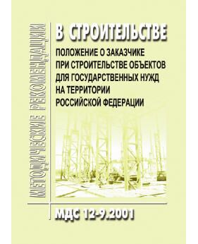 МДС 12-9.2001 Положение о заказчике при строительстве объектов для государственных нужд на территории Российской Федерации. Утвержден Постановлением Госстроя РФ от 08.06.2001 № 58