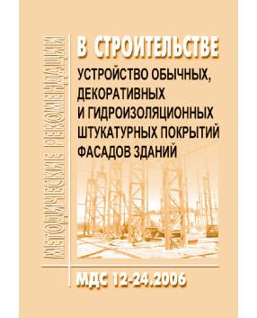 МДС 12-24.2006 Устройство обычных, декоративных и гидроизоляционных штукатурных покрытий фасадов зданий. Утвержден ЗАО "ЦНИИОМТП" 1 января 2006 года