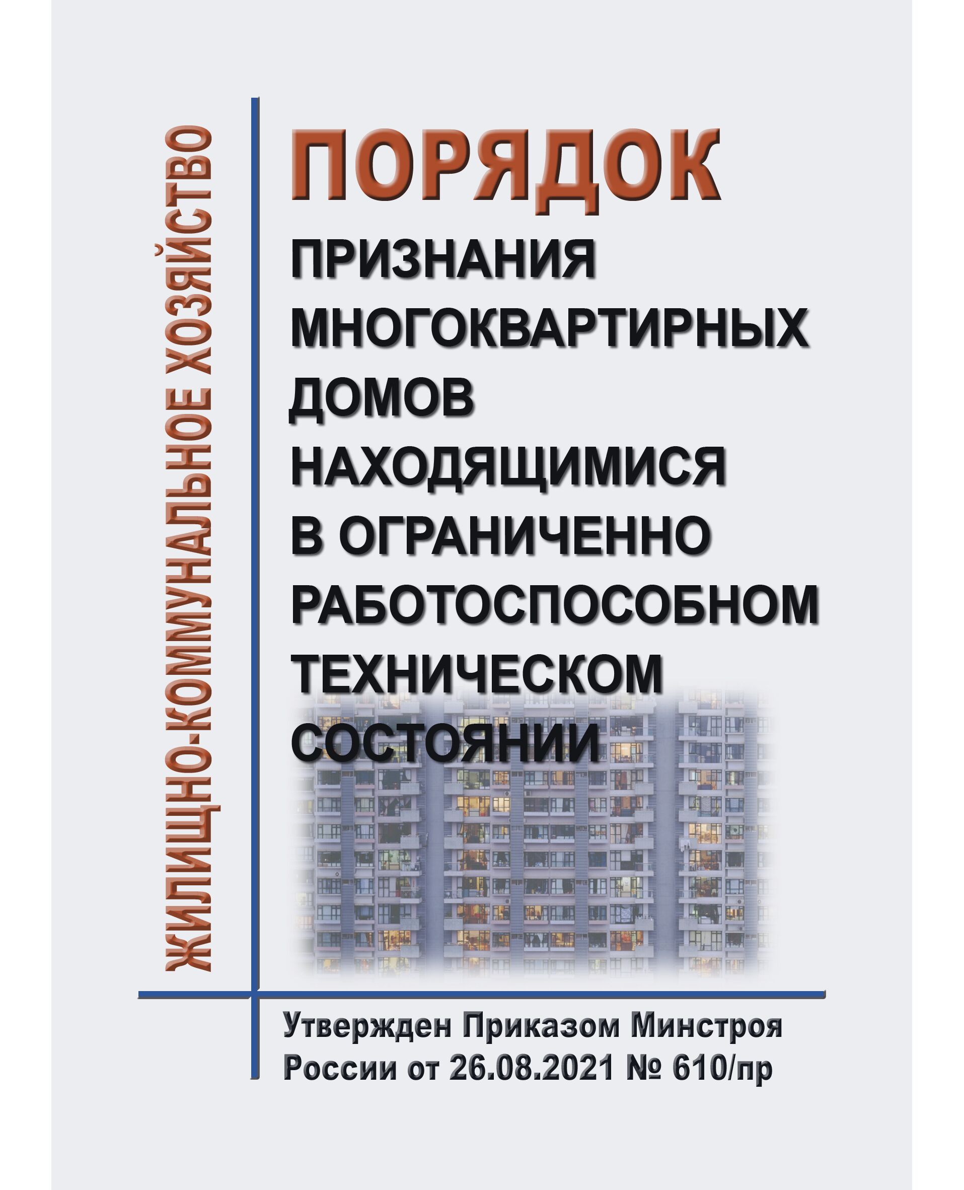 Порядок признания многоквартирных домов находящимися в ограниченно работоспособном техническом состоянии. Утвержден Приказом Минстроя России от 26.08.2021 № 610/пр
