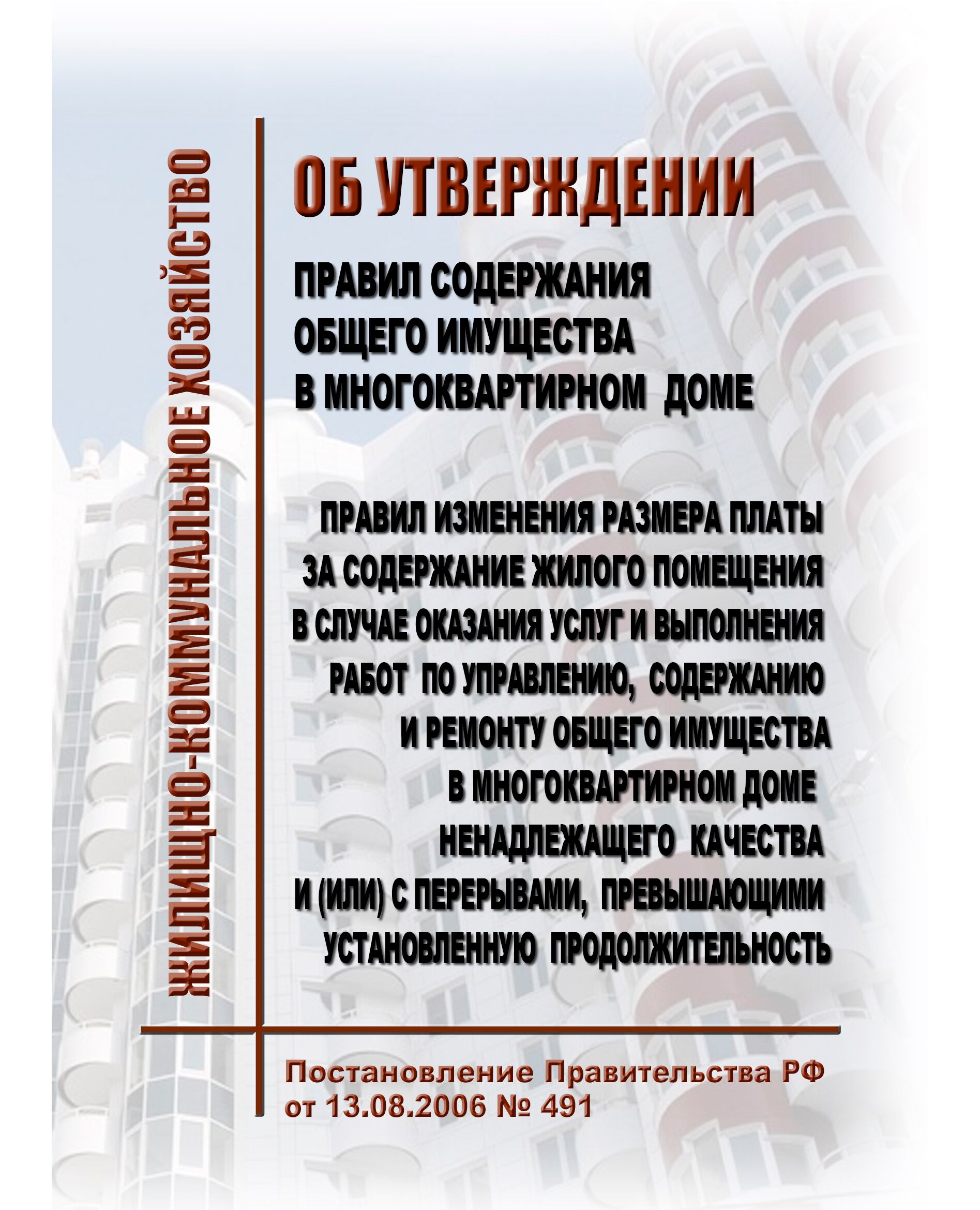 Главная/Книжные издания (Книги, брошюры)/Строительство/Жилищно-коммунальное хозяйство/Правила содержания общего имущества в многоквартирном доме и Правила изменения размера платы за содержание жилого помещения в случае оказания услуг и выполнения работ по управлению, содержанию и ремонту общего имущества в многоквартирном доме ненадлежащего качества и (или) с перерывами, превышающими установленную продолжительность. Утверждены Постановлением Правительства РФ от 13.08.2006 № 491 в редакции Постановления Правительства РФ от 07.03.2025 № 293