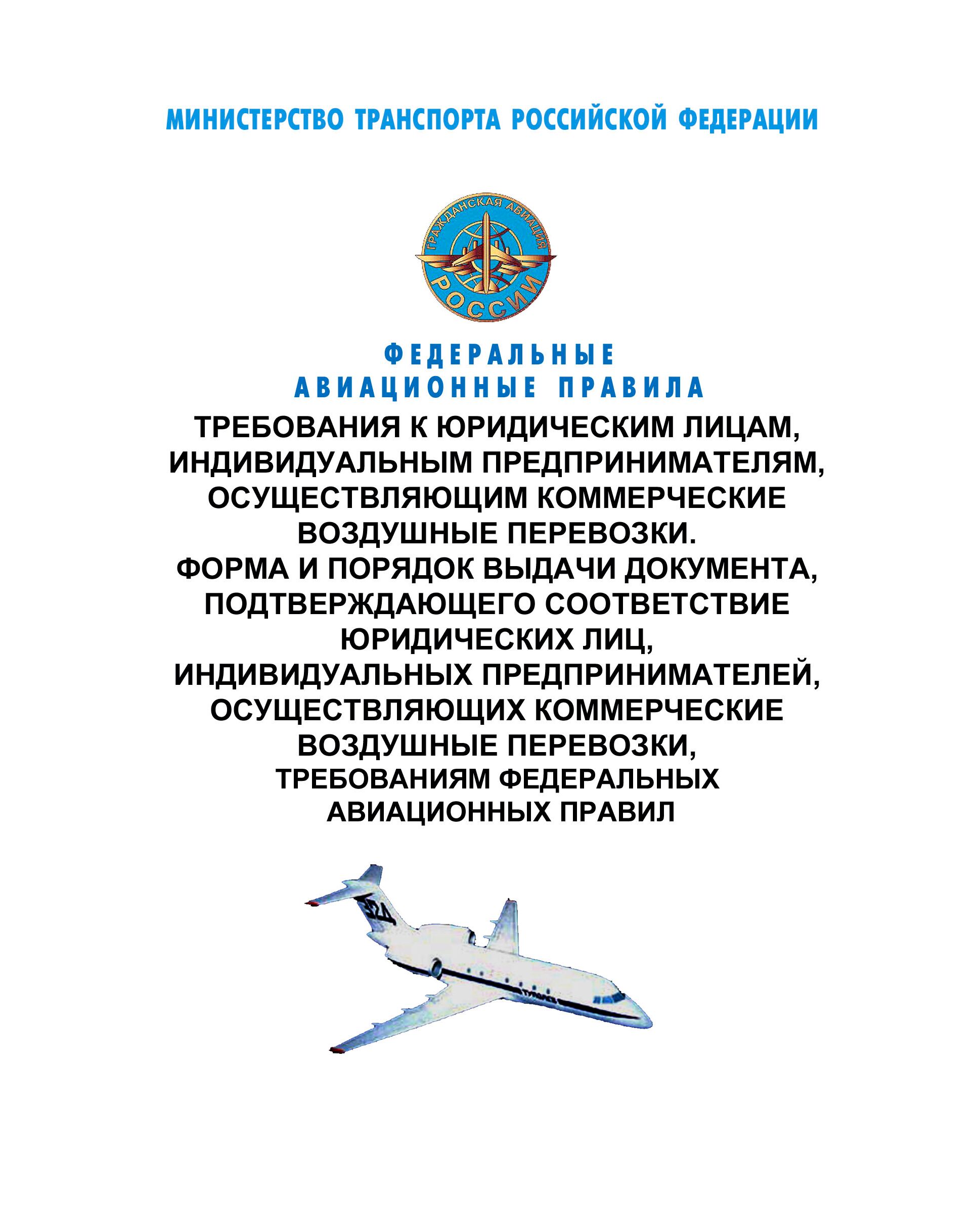 Настоящие Правила устанавливают порядок выдачи документа, подтверждающего соответствие юридических лиц, индивидуальных предпринимателей, осуществляющих коммерческие воздушные перевозки (эксплуатант, сертификат эксплуатанта соответственно), требованиям федеральных авиационных правил, и требования к эксплуатанту.