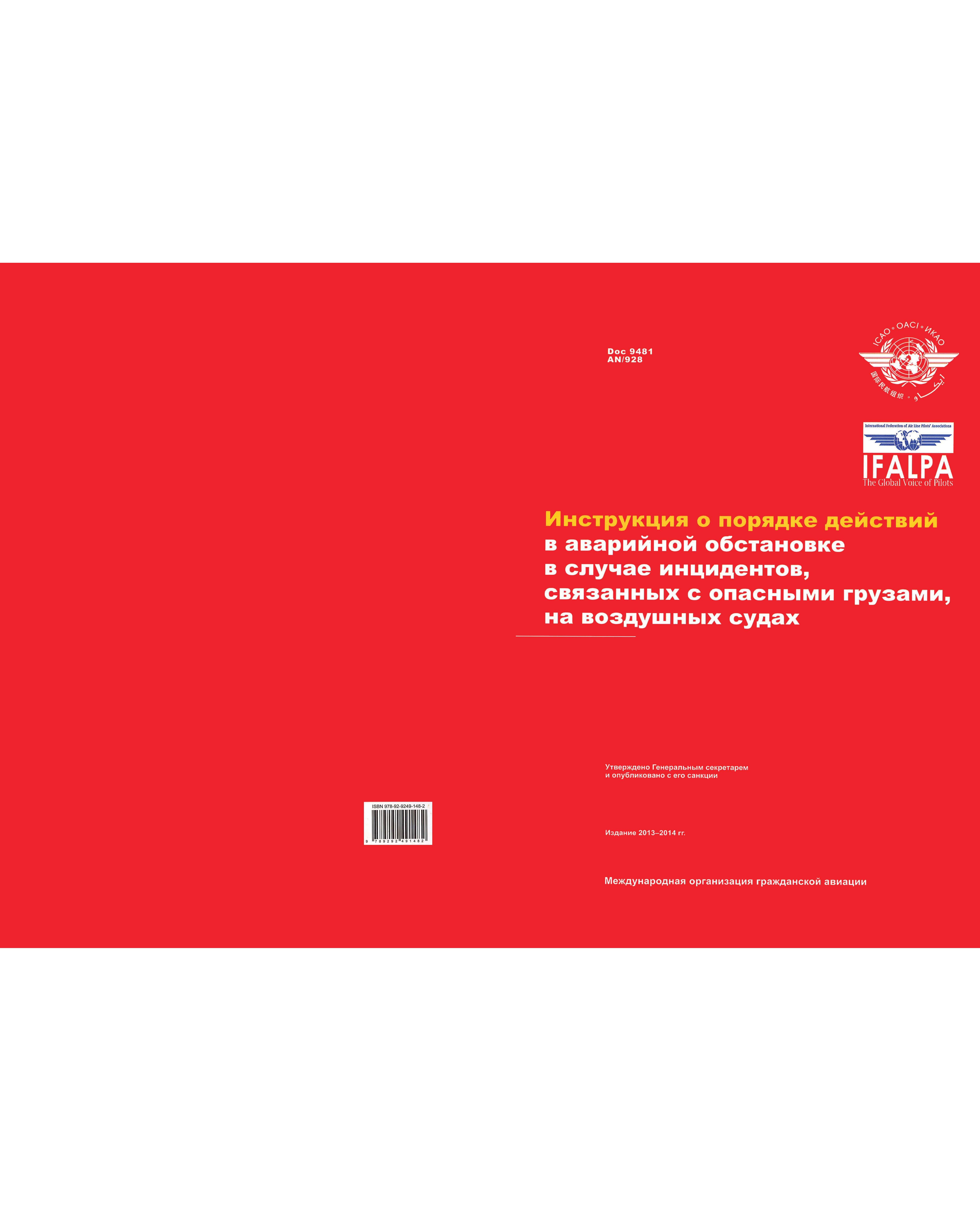 Doc 9481 Инструкция о порядке действий в аварийной обстановке в случае инцидентов, связанных с опасными грузами, на воздушных судах. Издание 2013-201