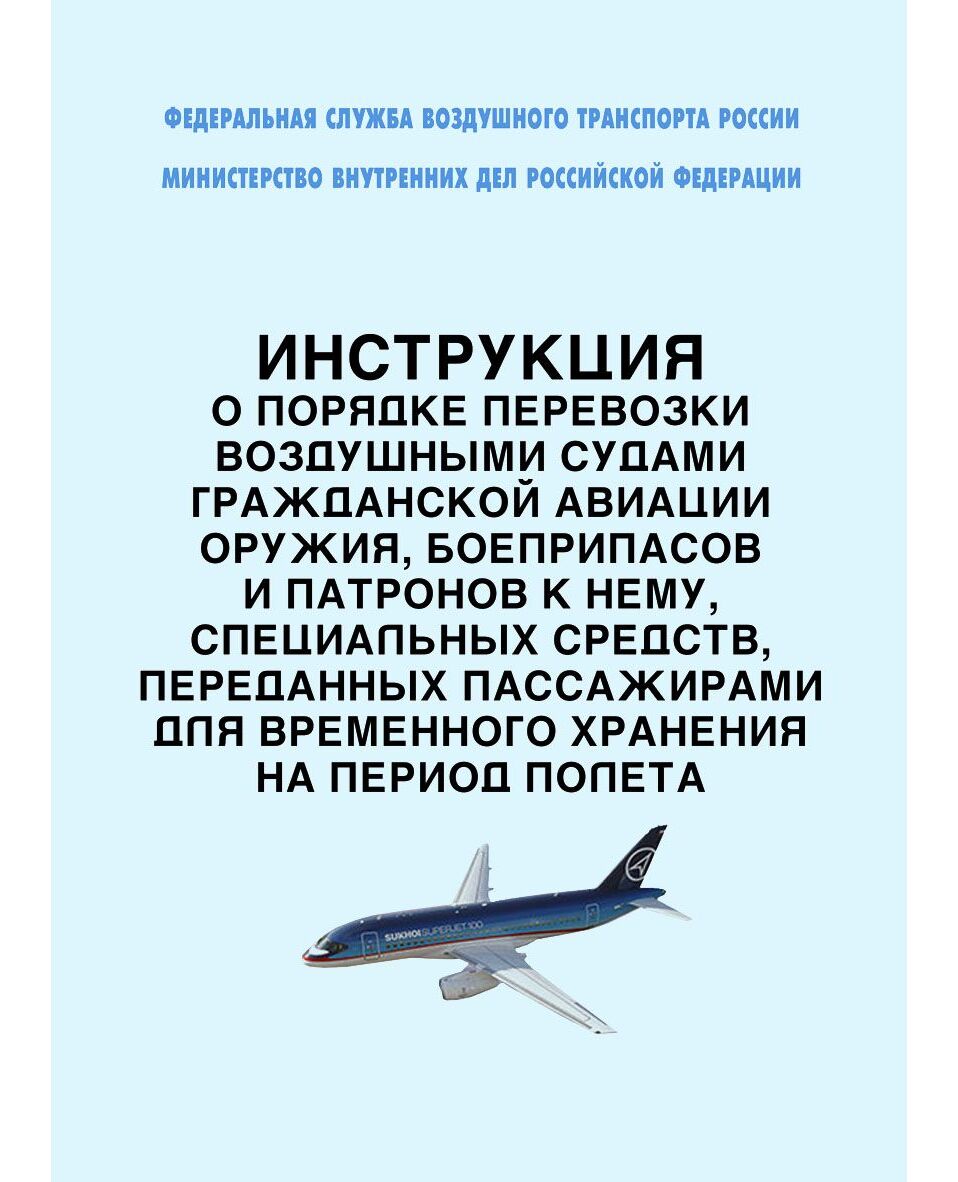 Настоящая Инструкция разработана на основании положений Воздушного кодекса Российской Федерации и определяет порядок перевозки оружия, боеприпасов и патронов к нему, специальных средств, переданных для временного хранения на период полета пассажирами, имеющими соответствующие разрешения на их хранение и ношение, а в необходимых случаях - на ввоз оружия на территорию Российской Федерации и вывоз из Российской Федерации.