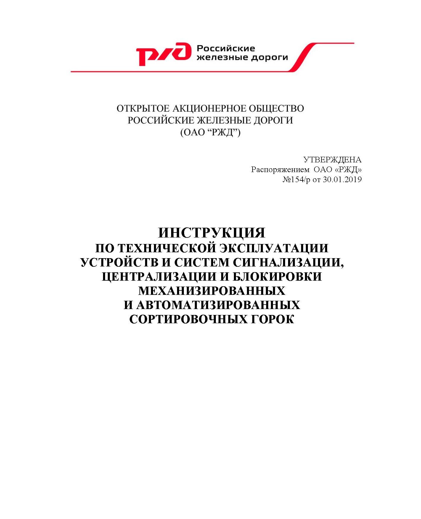Инструкции по технической эксплуатации устройств и систем сигнализации, централизации и блокировки механизированных и автоматизированных сортировочных горок, утв. Распоряжением ОАО "РЖД" от 20.02.2015 № 452р.