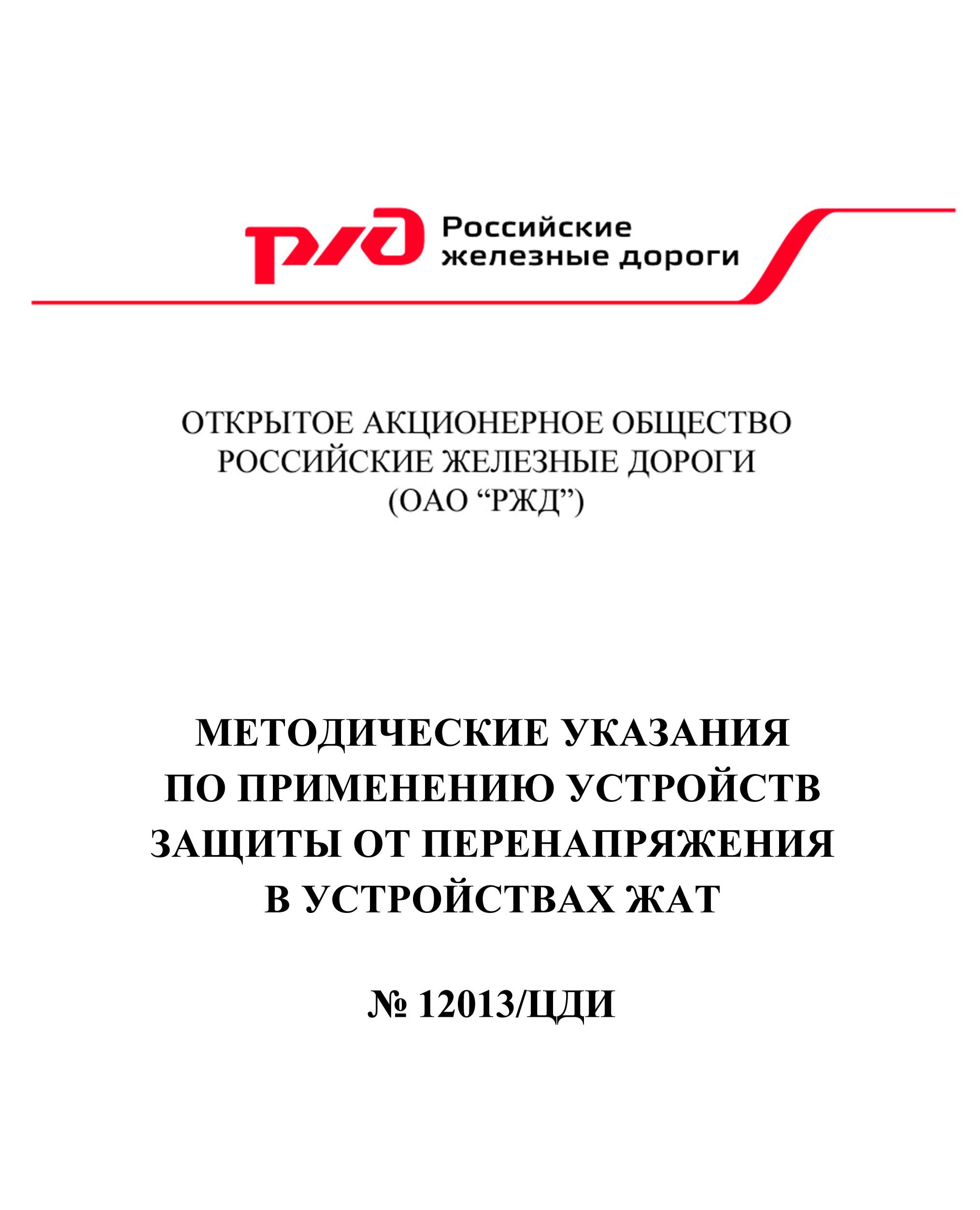 Методические указания по применению устройств защиты от перенапряжения в устройствах ЖАТ. № 12013/ЦДИ от 31 марта 2016 г.
