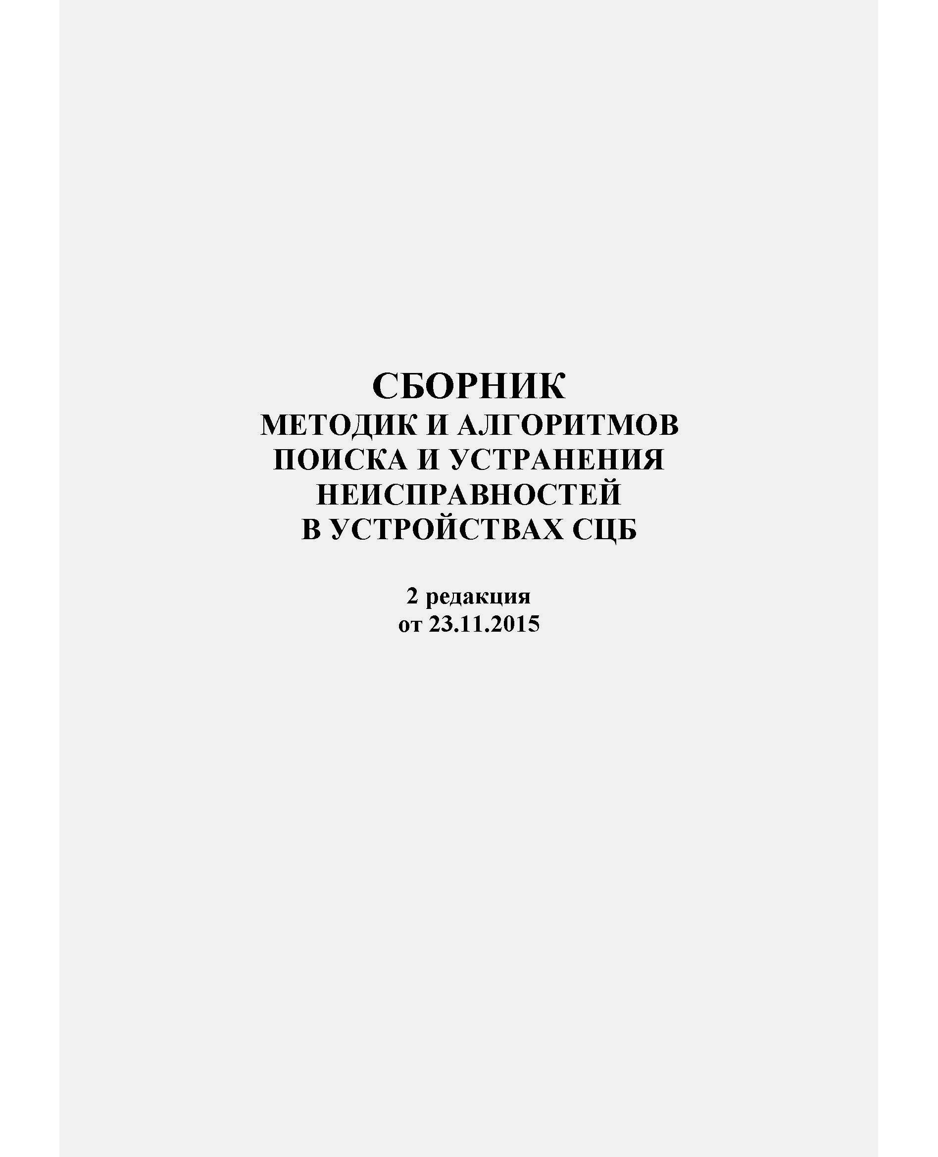 Настоящий сборник методик и алгоритмов поиска и устранения неисправностей в устройствах СЦБ подготовлен в соответствии с заданием Управления автоматики и телемеханики ЦДИ ОАО «РЖД» и предназначен для проведения технической учебы с эксплуатационным штатом, а также в качестве практического пособия при устранении реальных неисправностей в действующих устройствах. Сборник является дополняемым и расширяемым документом, который будет дополняться по мере совершенствования алгоритмов, появления новых устройств и развития средств диагностики. Основой настоящего сборника служат ранее разработанные алгоритмы и методики, в том числе на уровне служб автоматики и телемеханики.