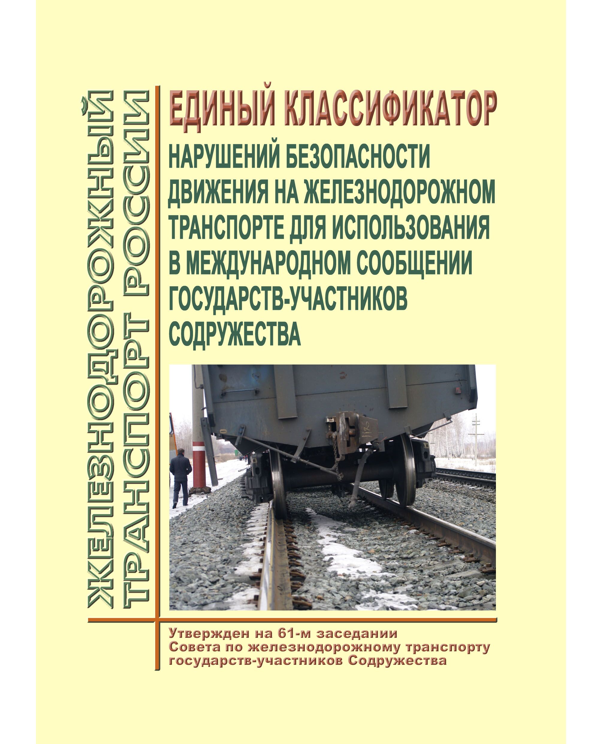 Единый классификатор случаев нарушений безопасности движения (НБД) в международном сообщении стран-участников Содружества разработан с целью формирования нормативной основы по учету транспортных происшествий и оценки состояния безопасности движения в международных транспортных железнодорожных коридорах.