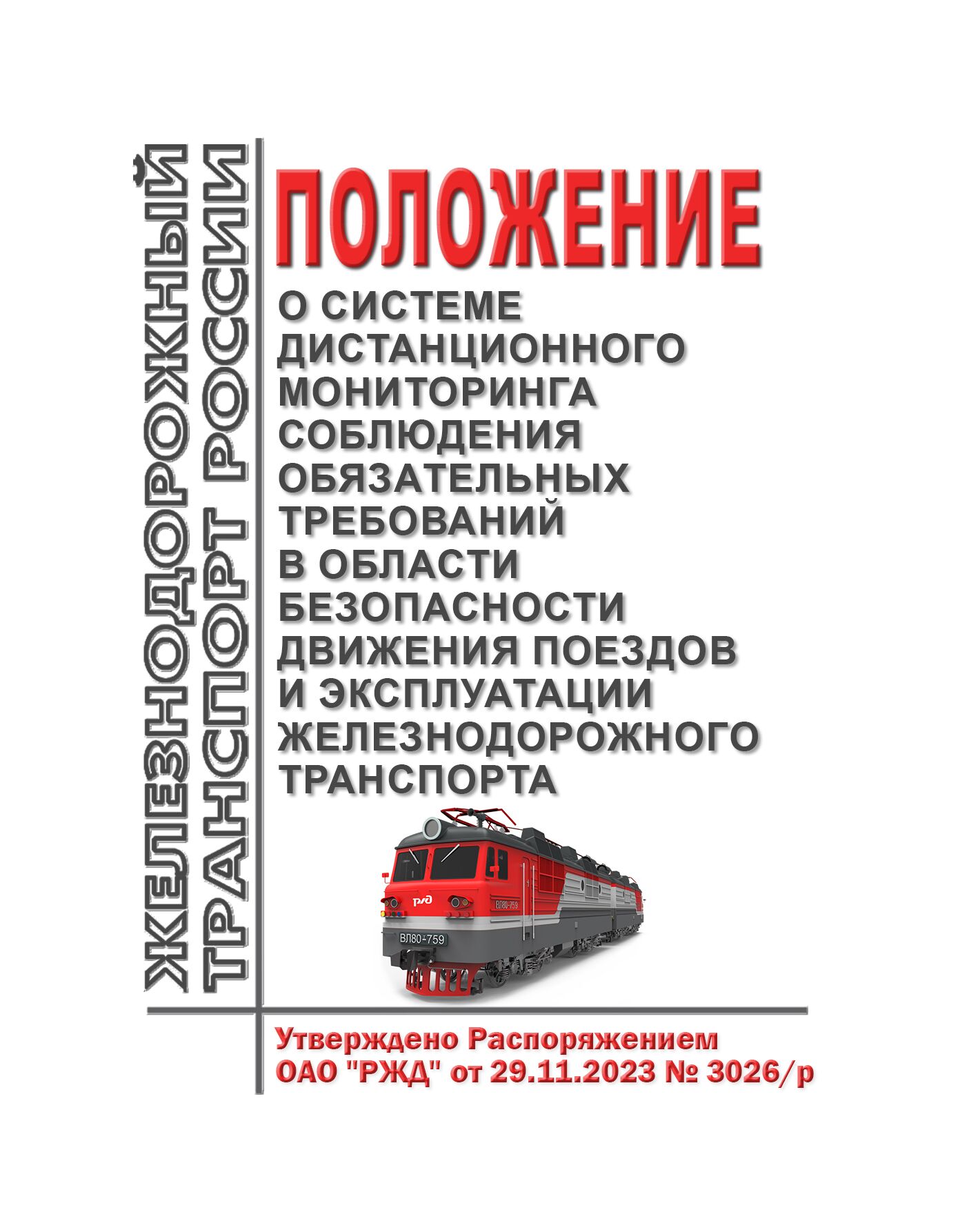 Положение о системе дистанционного мониторинга соблюдения обязательных требований в области безопасности движения поездов и эксплуатации железнодорожного транспорта. Утверждено Распоряжением ОАО "РЖД" от 29.11.2023 № 3026/р