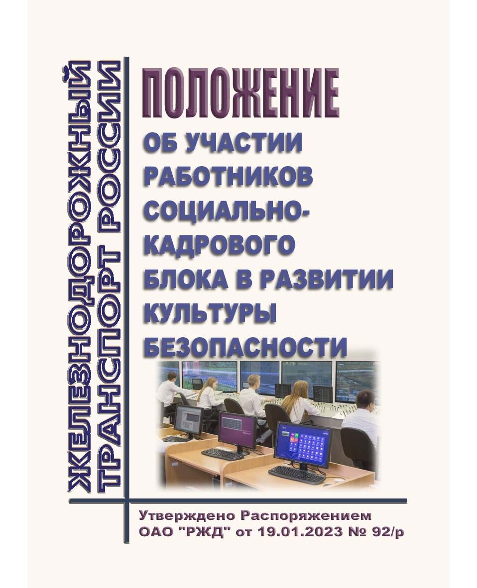 Положение об участии работников социально-кадрового блока в развитии культуры безопасности. Утверждено Распоряжением ОАО "РЖД" от 19.01.2023 № 92/р