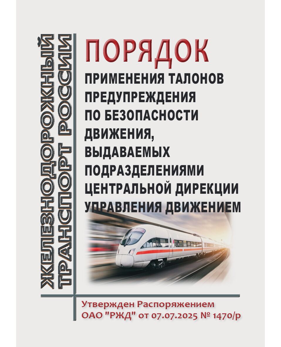 Порядок устанавливает требования к применению в подразделениях Центральной дирекции управления движением талонов предупреждения по безопасности движения и корешков к ним, а также их применение в подразделениях функциональных филиалов ОАО "РЖД"