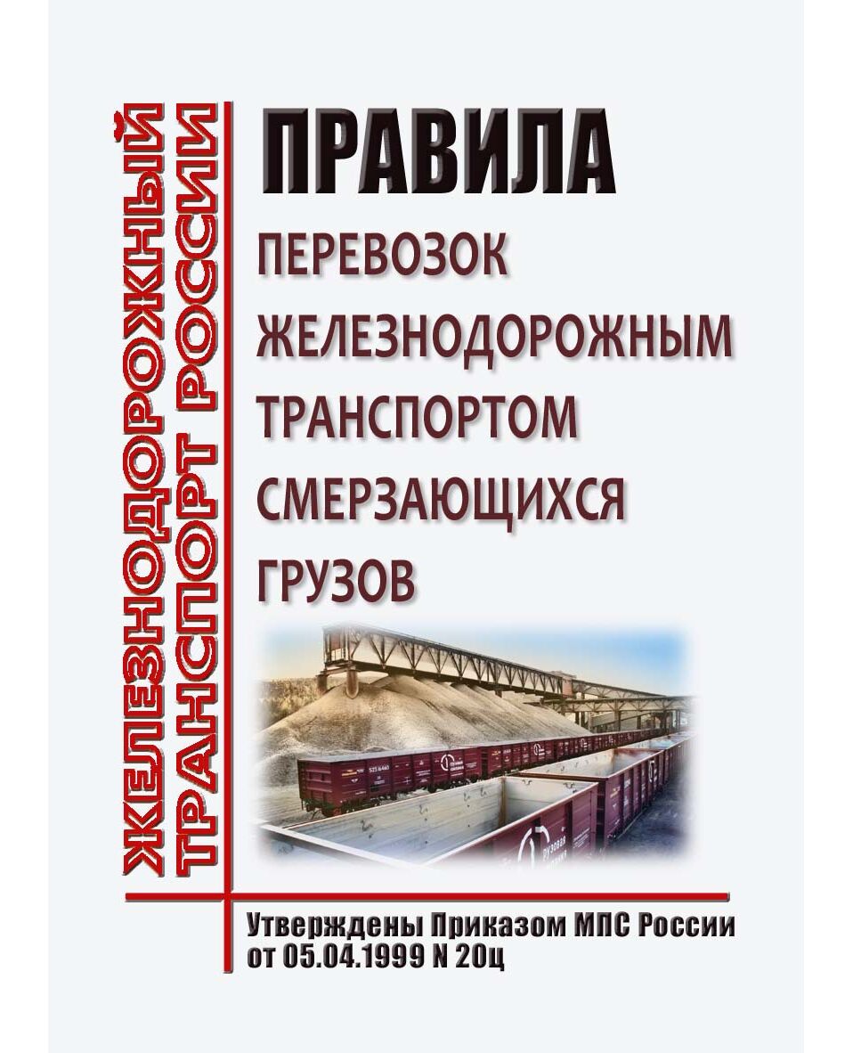 Правила перевозок железнодорожным транспортом смерзающихся грузов. Утверждены Приказом МПС России от 05.04.1999 N 20ц в редакции Приказа Минтранса России от 12.12.2008 № 211